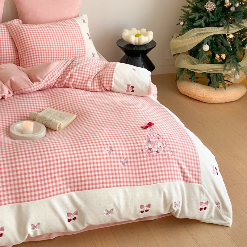 冬加厚牛奶绒四件套加绒被套床单卡通儿童三件珊瑚绒公主床上用品