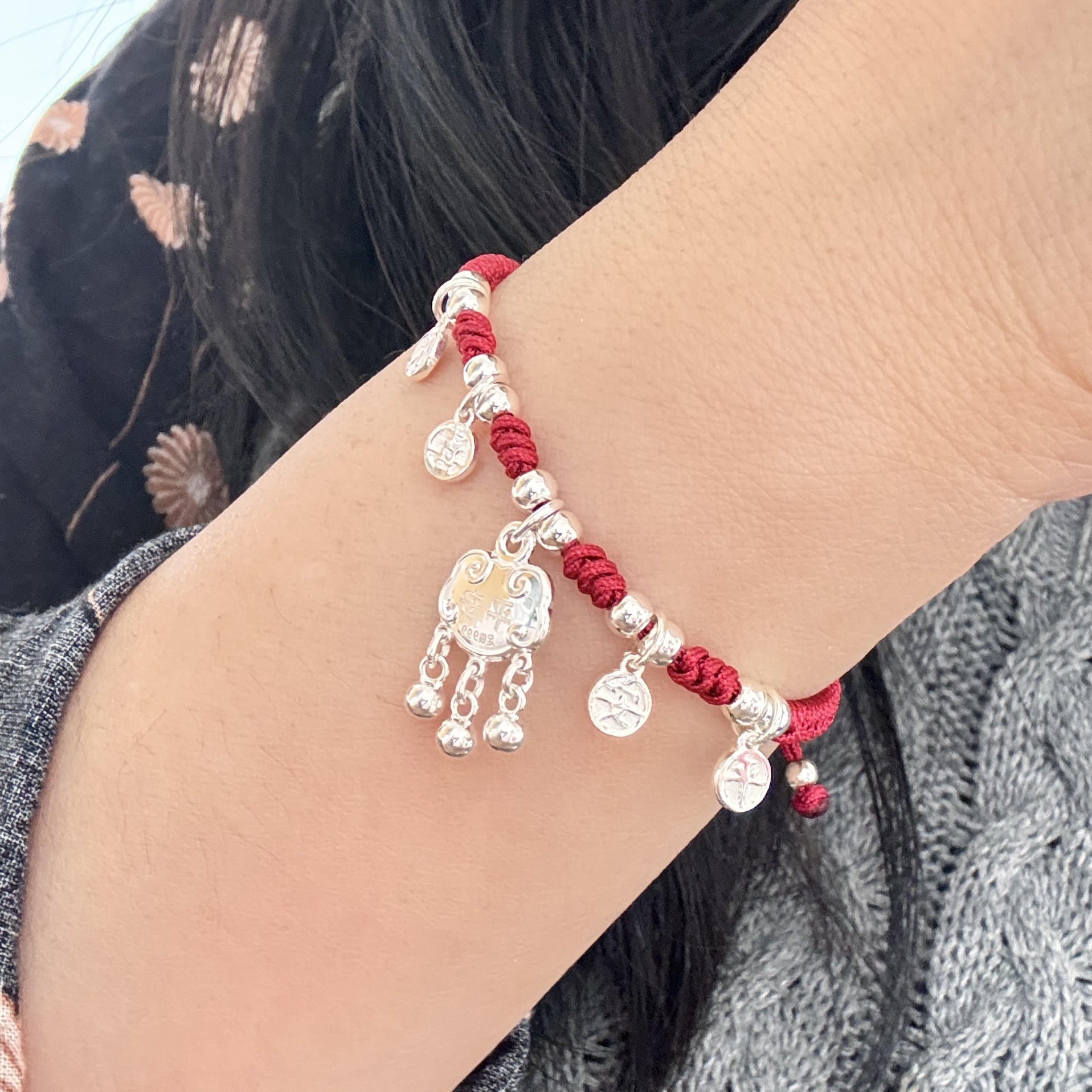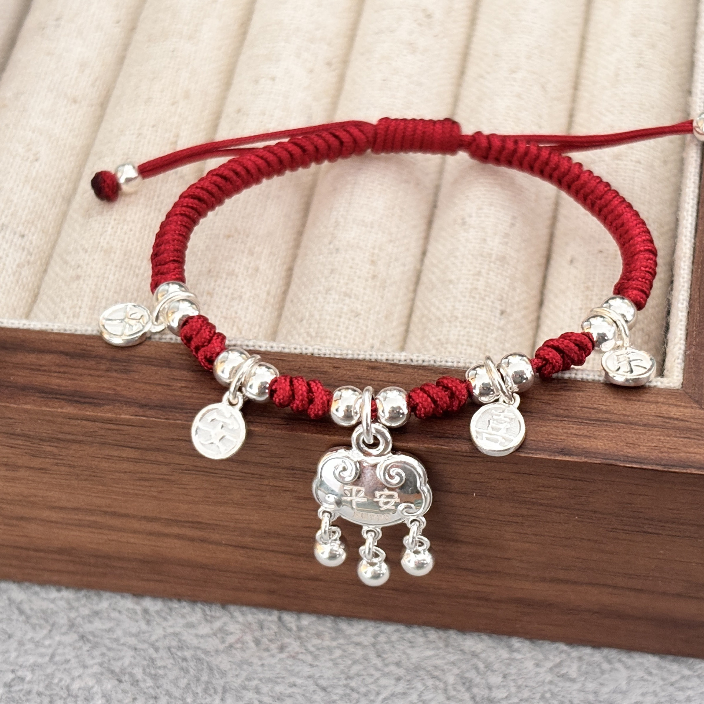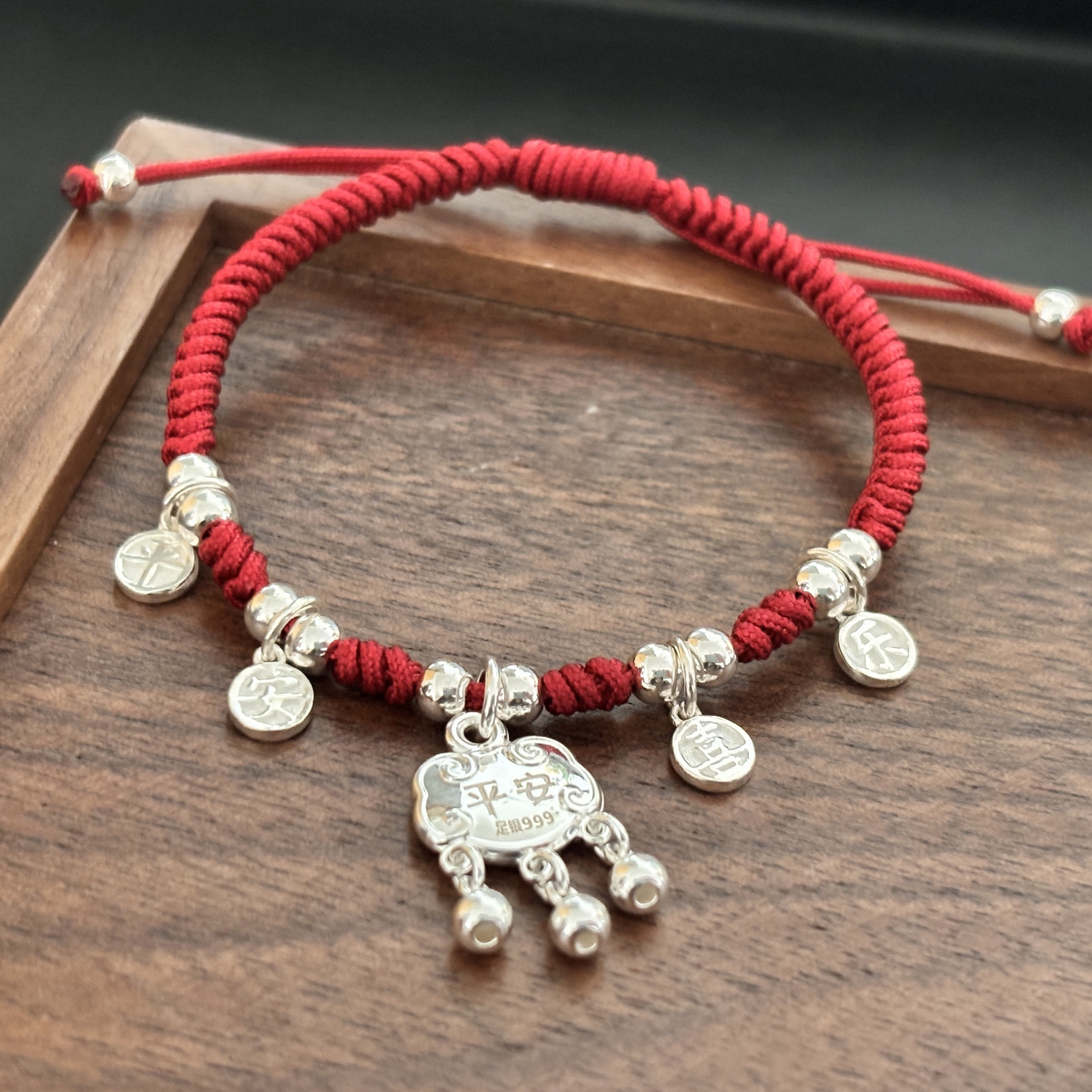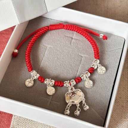 999足银 平安锁 平安喜乐手绳福字铃铛长命锁送女友闺蜜礼物
