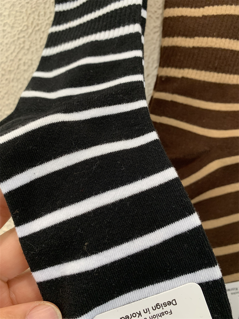 东大门2024秋季新款女袜街头学院风拼色条纹加长腰束腰运动中筒袜