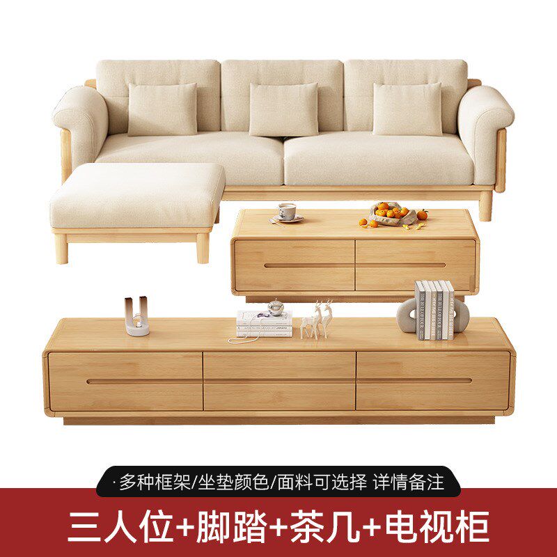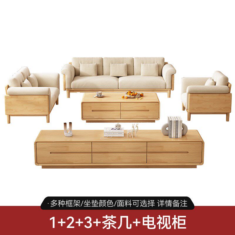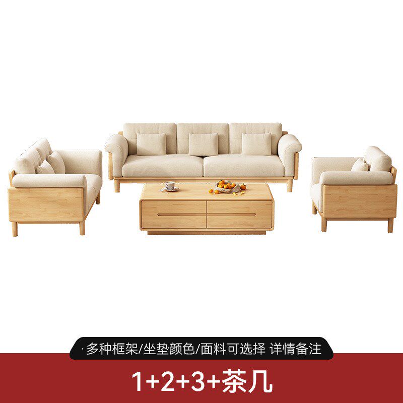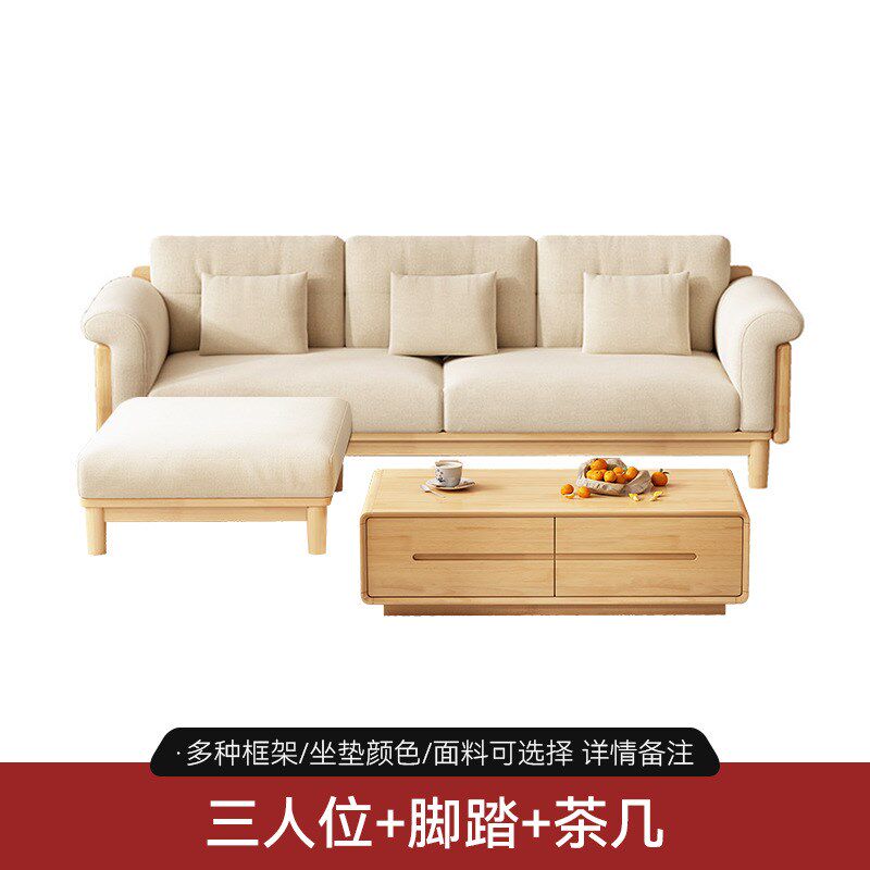 北欧全实木布艺沙发组合客厅小户型L型现代简约日式奶油风原木风
