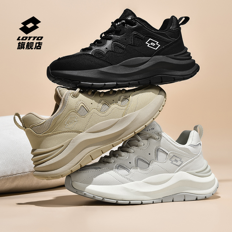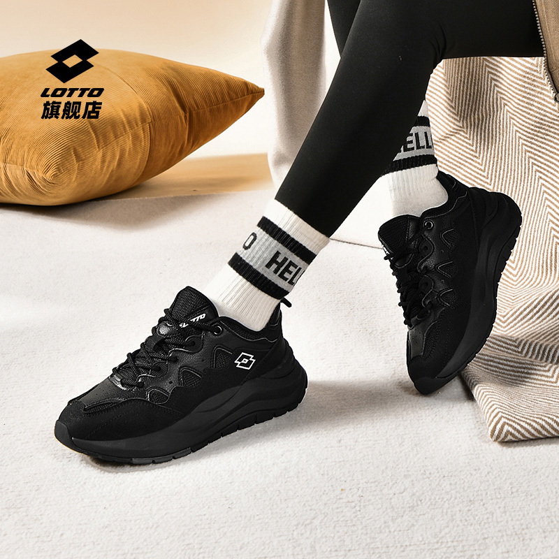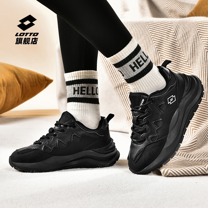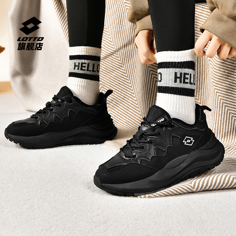 乐途运动鞋女冬季新款正品休闲鞋老爹鞋网面厚底复古黑色百搭女鞋