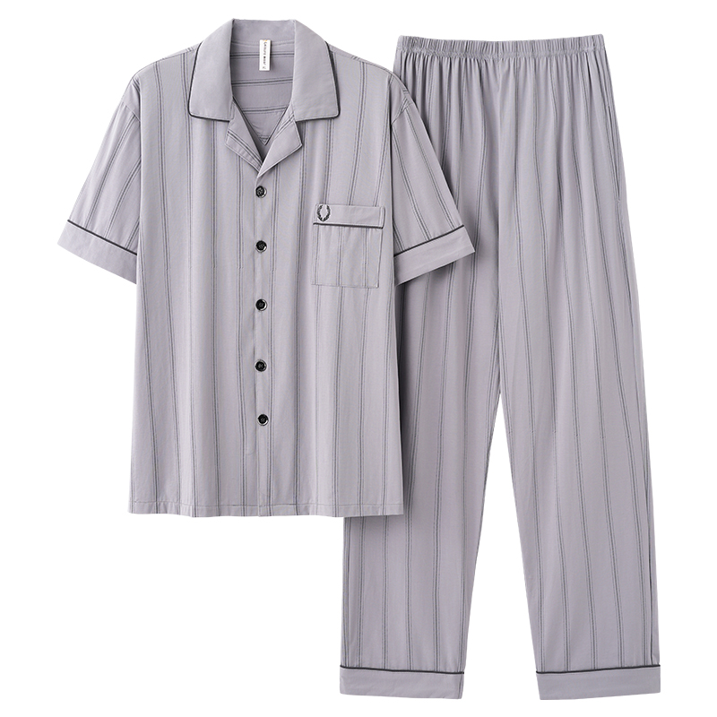 正品睡衣男夏季100%纯棉短袖长裤男士全棉薄款大码半袖家居服套装