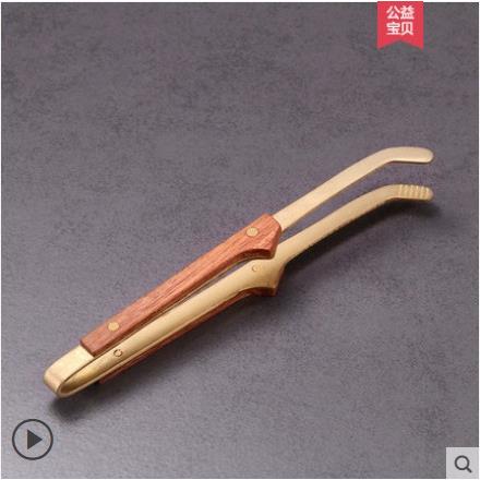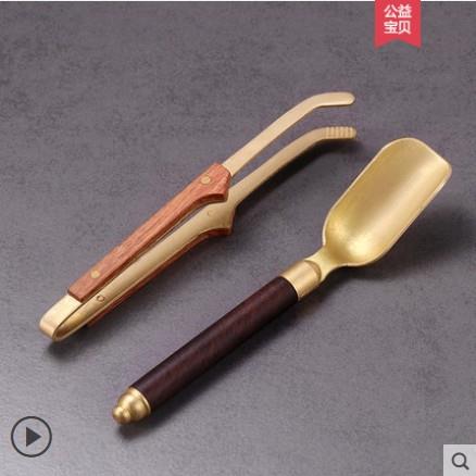 纯铜实木茶夹子套装茶勺茶匙高档茶杯镊子洗杯夹茶夹茶道茶具配件