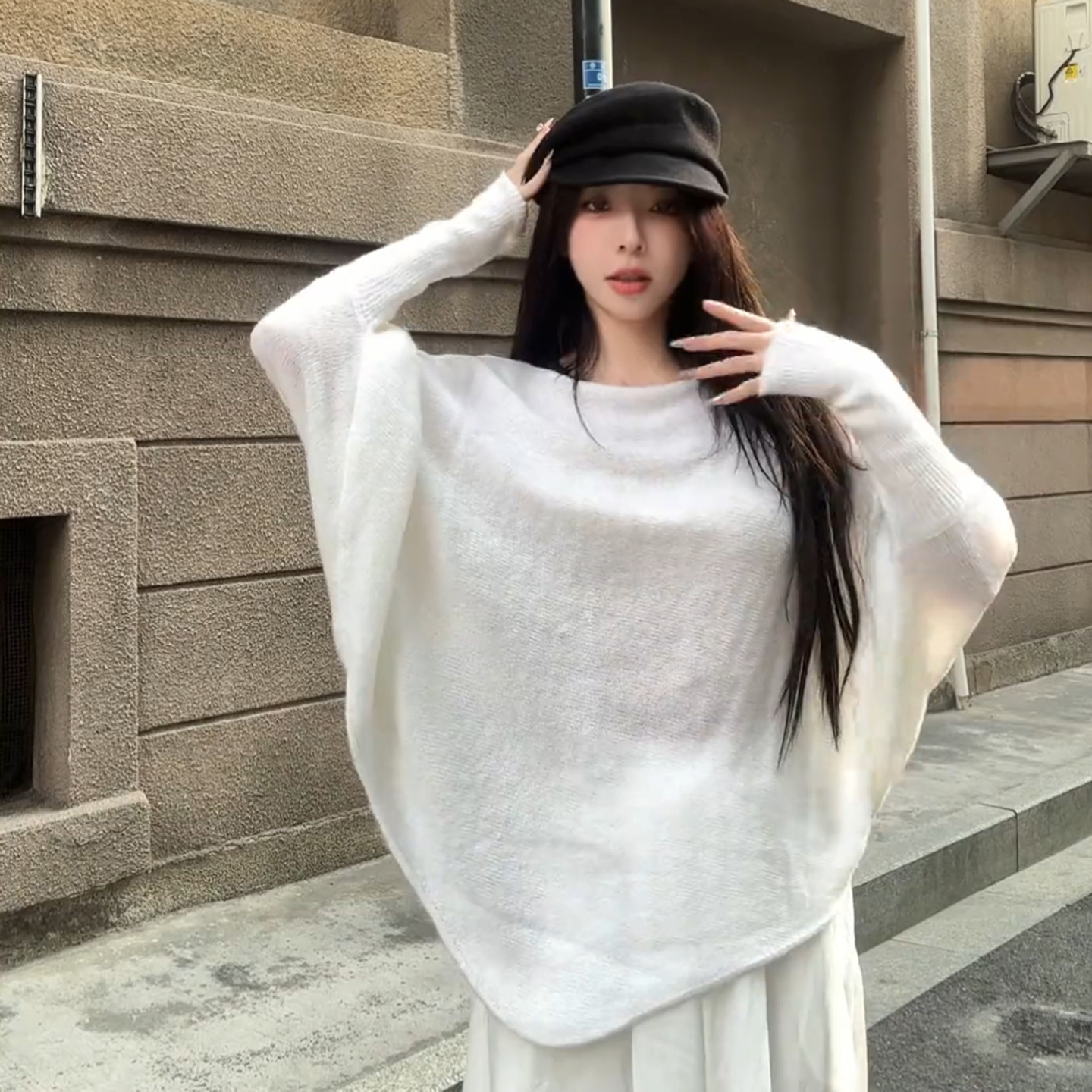 慵懒风圆领不规则毛衣针织衫女2025年秋新款松弛感蝙蝠袖宽松上衣
