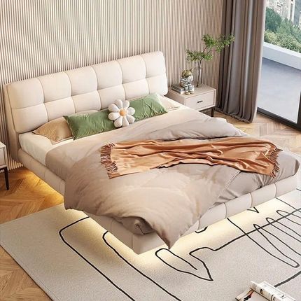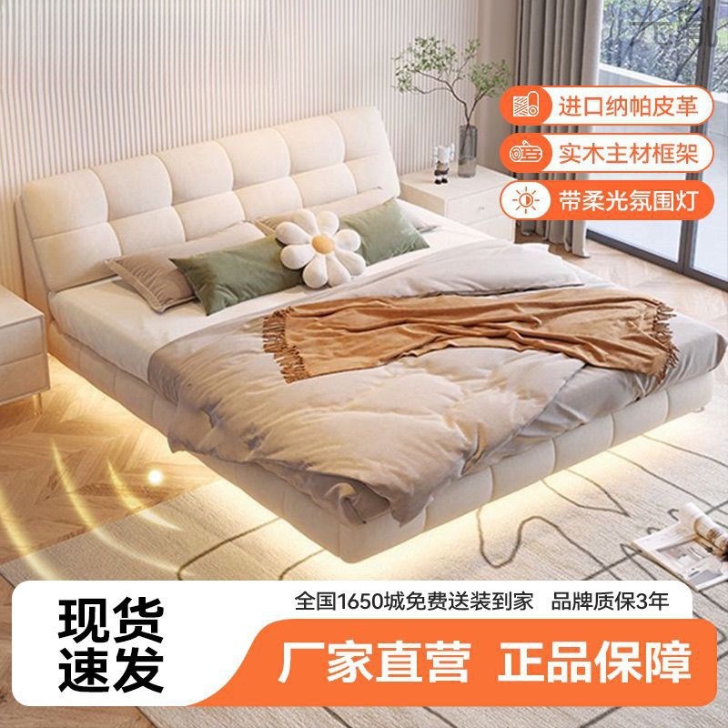 s光悬浮床1.8米皮床双人主卧简约现代大床1.5米北欧奶油风软包