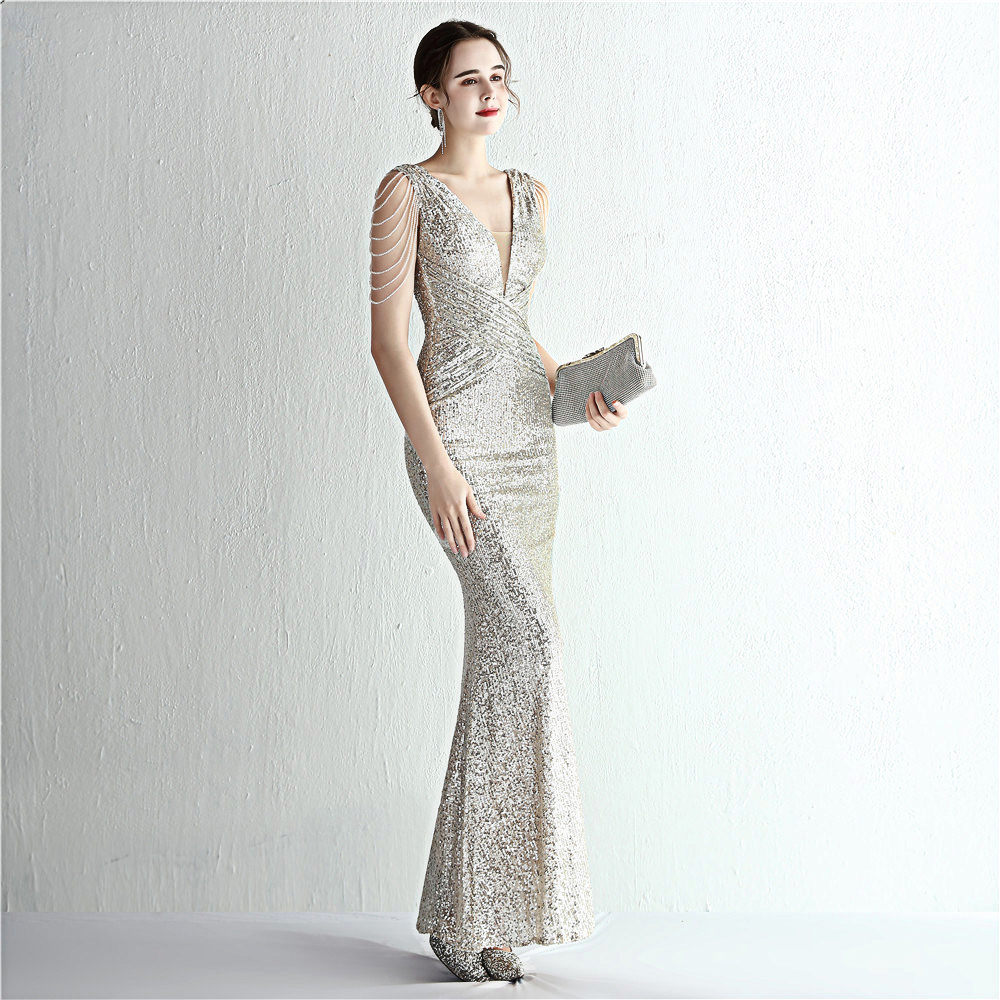 气质名媛宴会气质性感显身材长款连衣裙女亮片亮闪晚宴鱼尾晚礼服