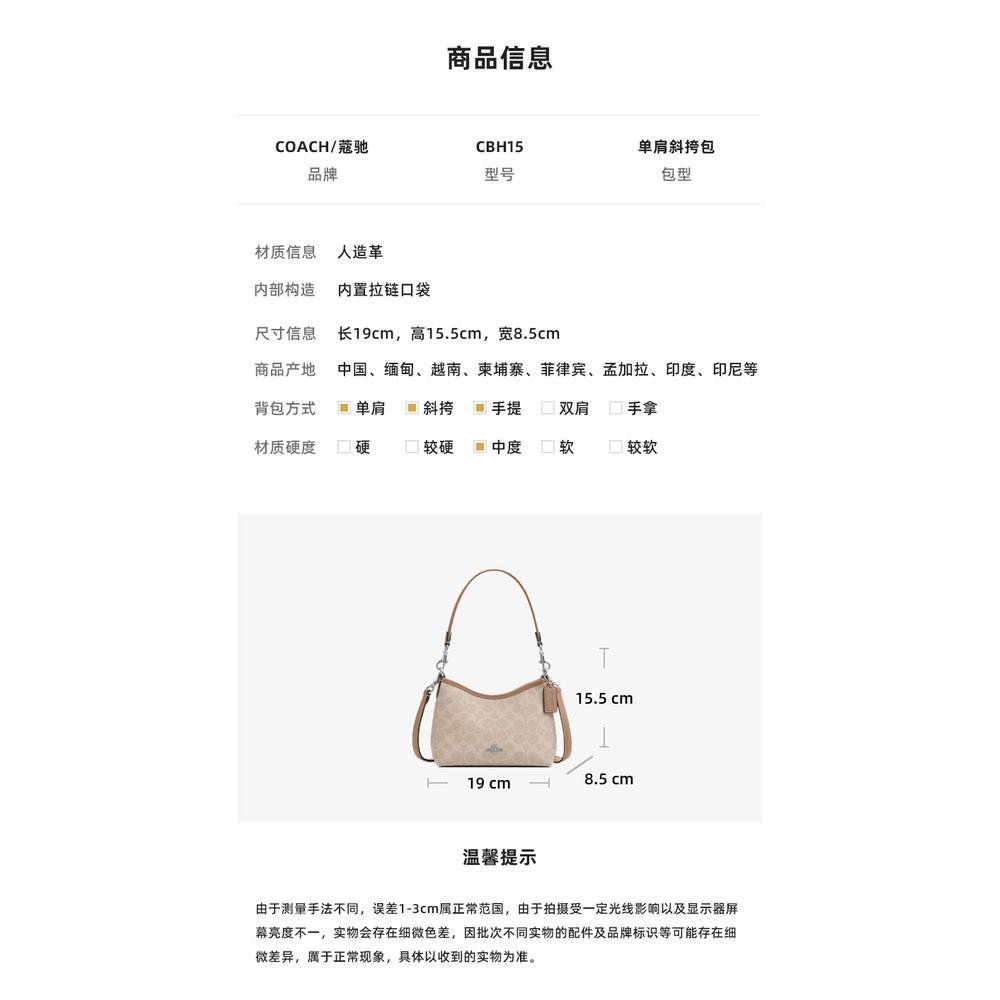 自营 COACH Laurel mini流浪包女士PVC配皮单肩斜挎手提包腋下包