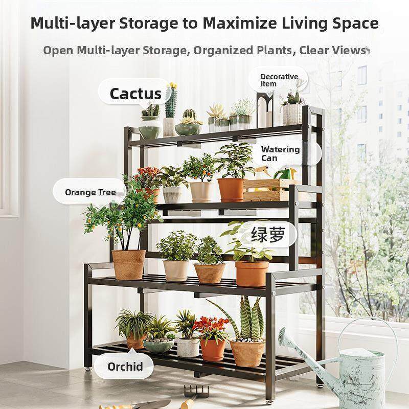 阶梯式货架多层置物架落地阳台客厅花架超市展示架可移动铁艺书架