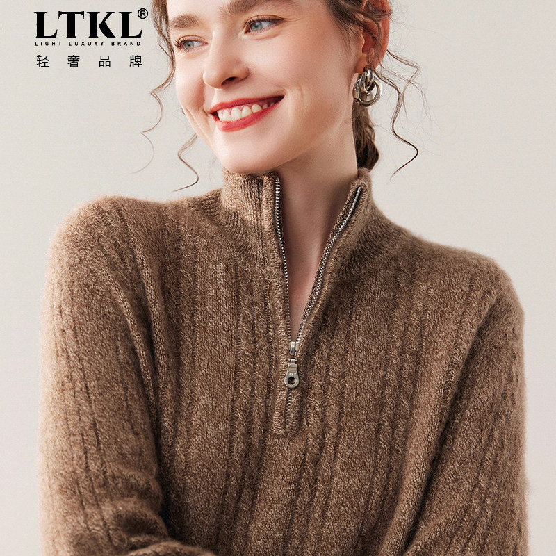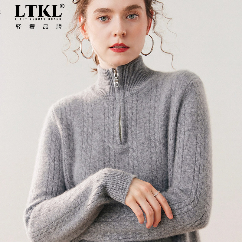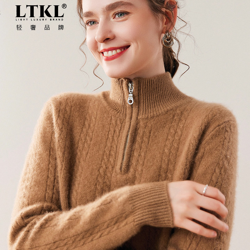 鄂尔多斯市加厚高领羊绒衫女士半拉链100%山羊绒针织毛衣打底衫