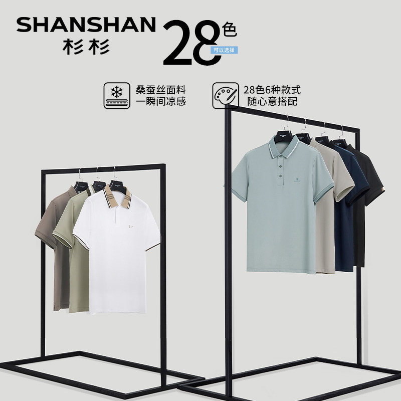 杉杉冰丝短袖T恤男款休闲翻领上衣2025夏季新款桑蚕丝凉感polo衫