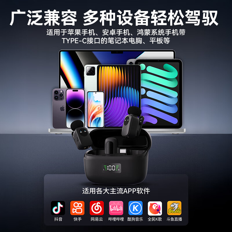 无线领夹麦克风直播专用主播户外降噪录收音麦话筒一拖二政府补贴