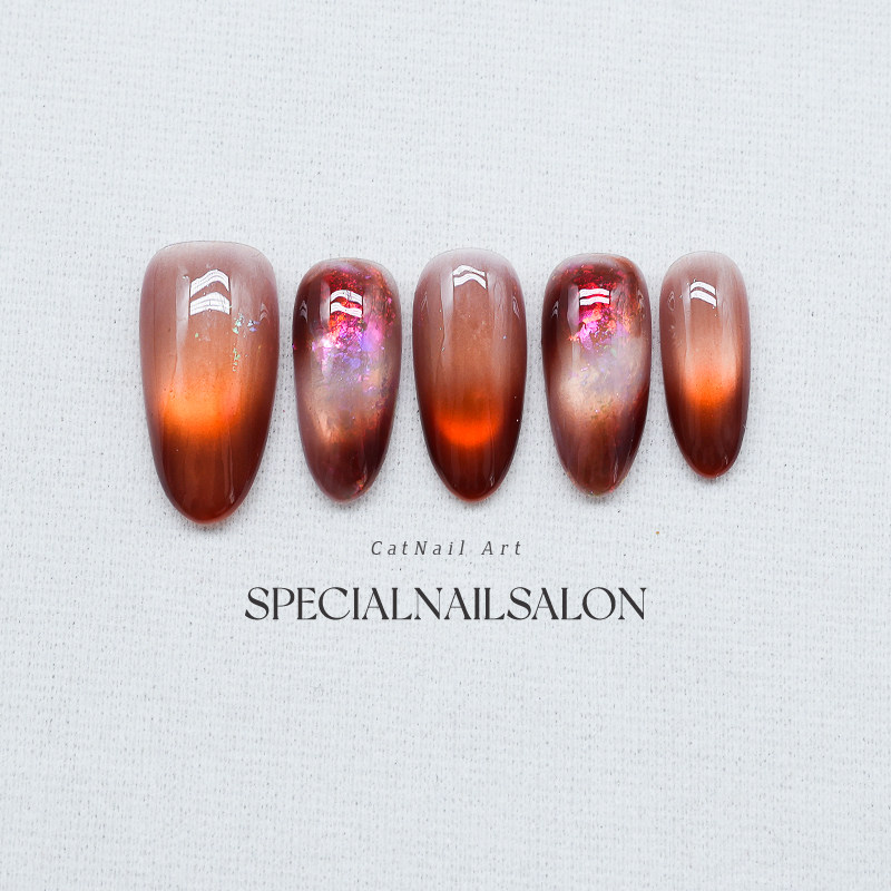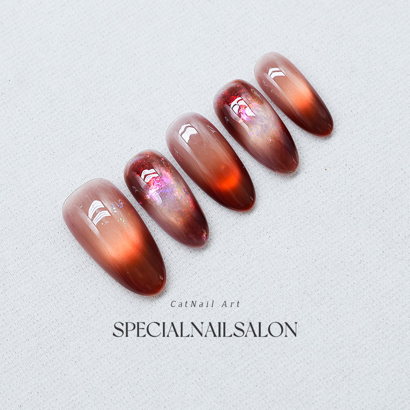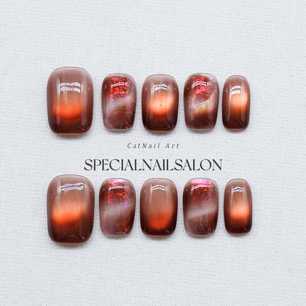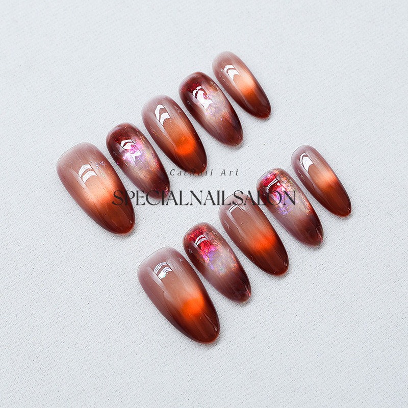 【琥珀蜜蜡】纯手工穿戴甲秋冬新款新年高级感晕染渐变猫眼美甲片