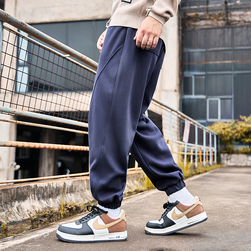 纺布者大码春秋重磅美式长卫裤男松紧腰抽绳束脚运动休闲场裤子男