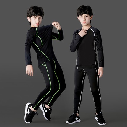 儿童篮球紧身衣训练服男童足球运动速干衣套装秋冬跑步打底衣加绒