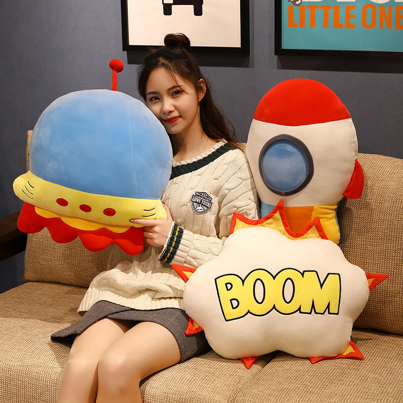新太空宇航员公仔火箭飞船抱枕沙发靠垫炸弹火星毛绒玩具儿童玩偶
