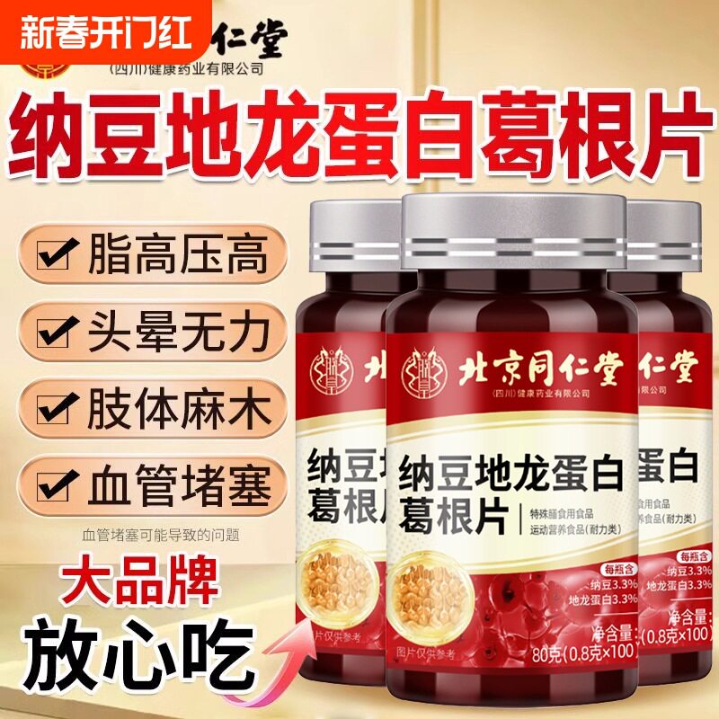北京同仁堂纳豆激酶红曲米辅助降血脂正品搭降血压三高的保健品非胆固醇甘油三酯的茶调节血脂