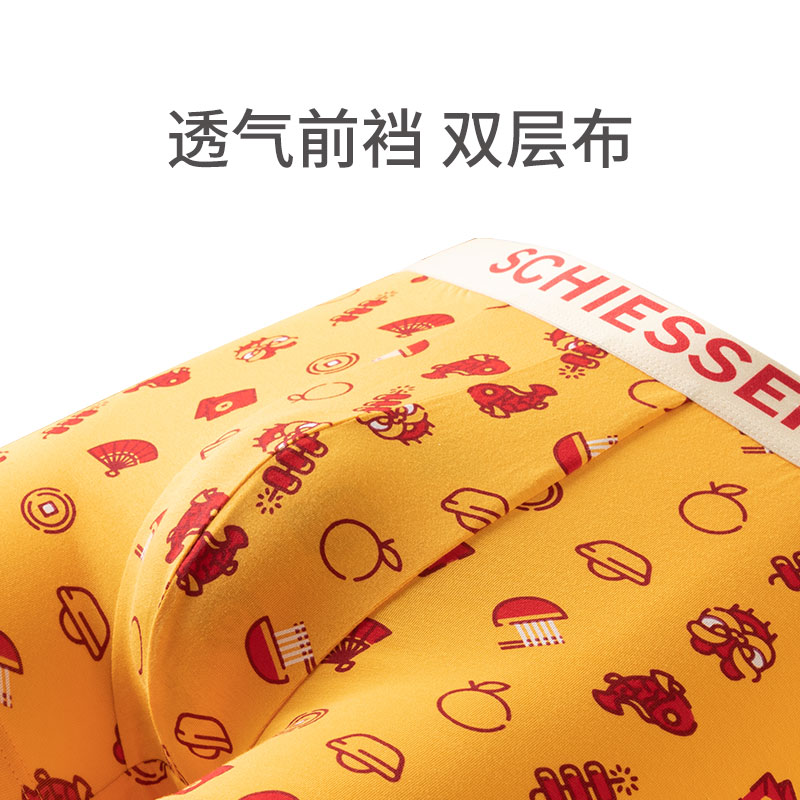 3条装SCHIESSER舒雅奥莱男士长绒棉新年鸿运红品中腰平角内裤