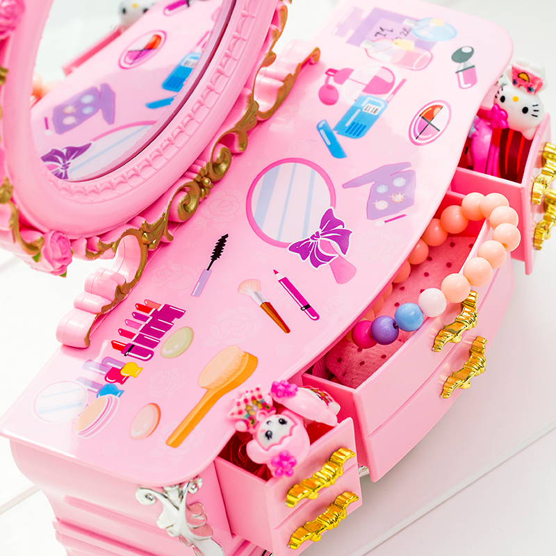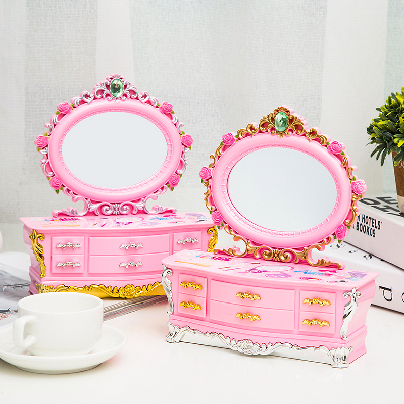 欧式甜美公主粉色梳妆镜八音盒小首饰抽屉收纳音乐盒儿童生日礼品
