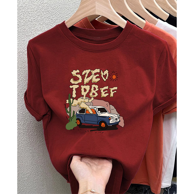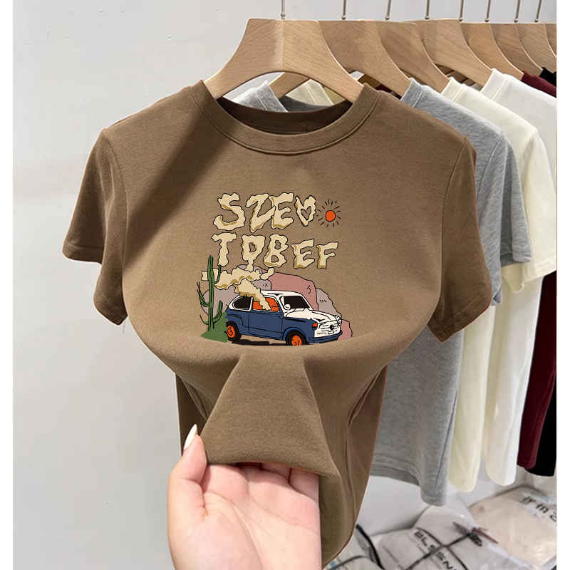白色印花短袖正肩t恤女纯棉2025夏季新款圆领显瘦基础款体恤上衣