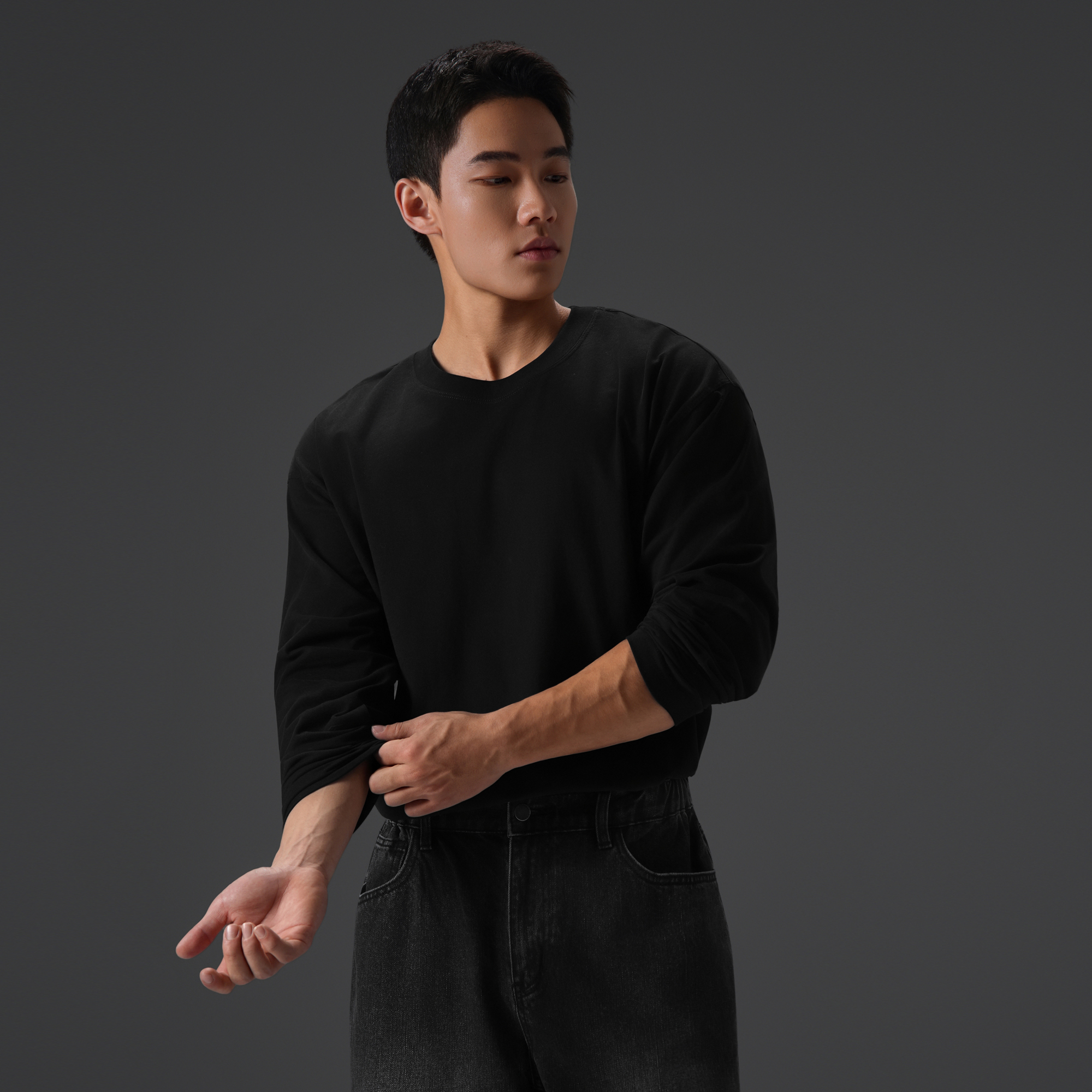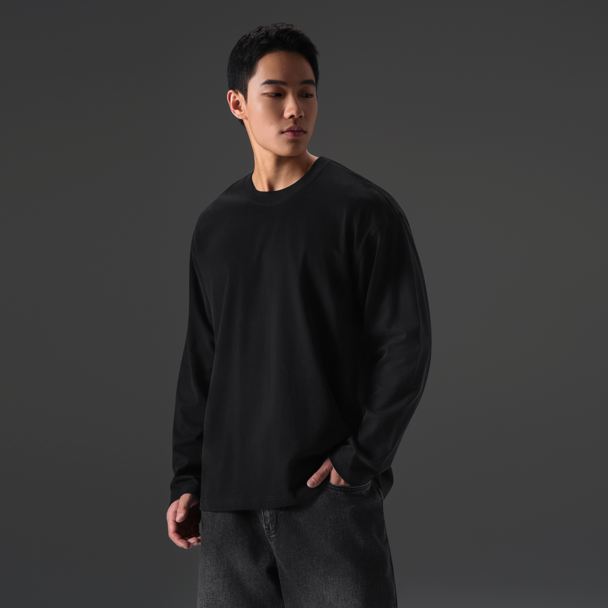 纯棉圆领长袖t恤男宽松