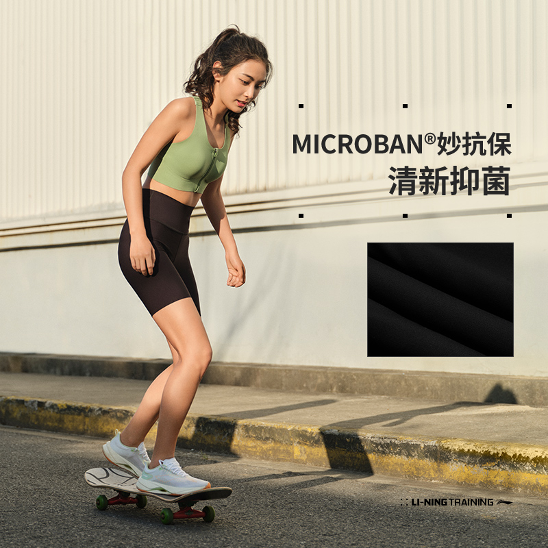 李宁紧身衣裤女夏健身系列时尚舒适训练紧身运动短裤AUSU028-B品