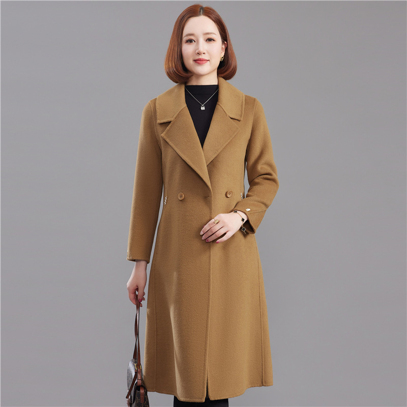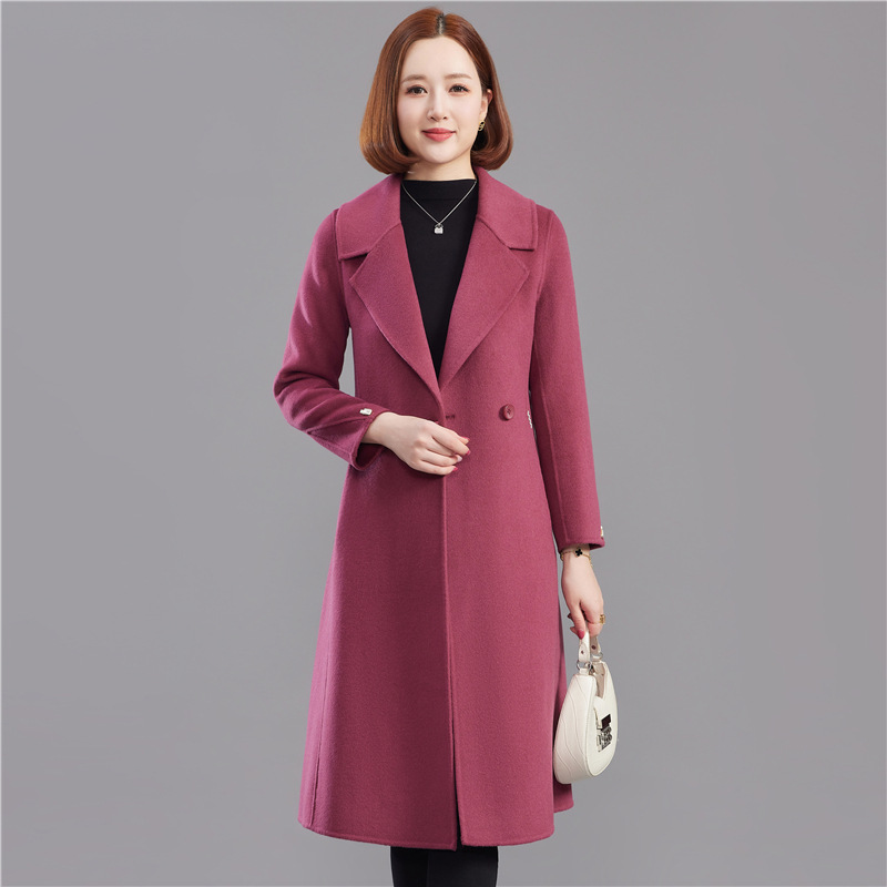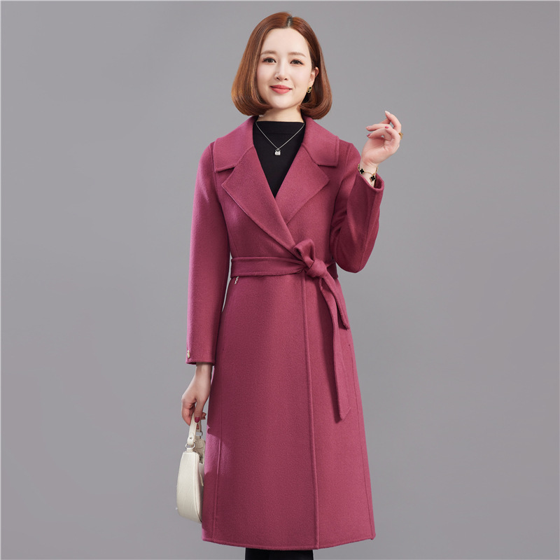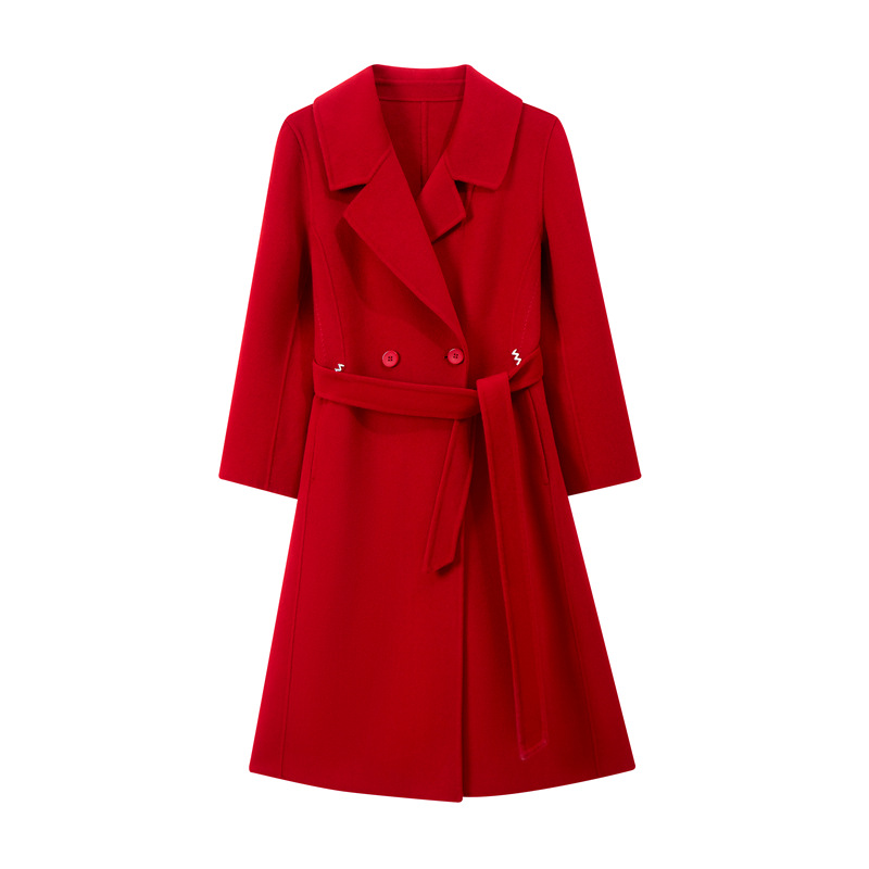 高档女士红色本命年双面呢羊毛大衣女2024秋冬款时尚休闲毛呢外套