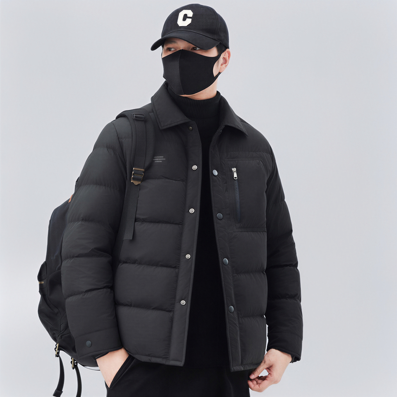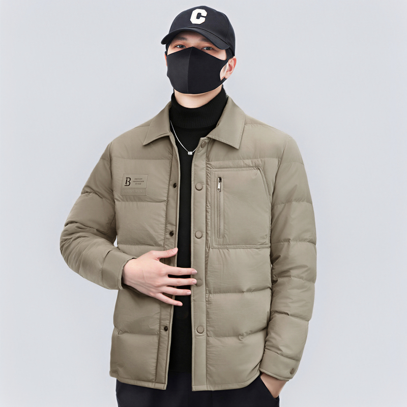 罗蒙羽绒服男士冬季商务休闲保暖防寒中年高端翻领白鸭绒短款外套
