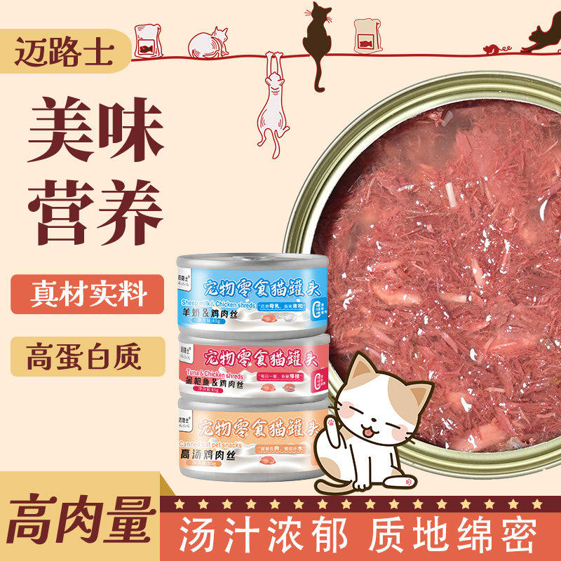迈路士猫罐头成猫幼猫通用型精选鸡肉丝羊奶金枪鱼零食罐多种口味