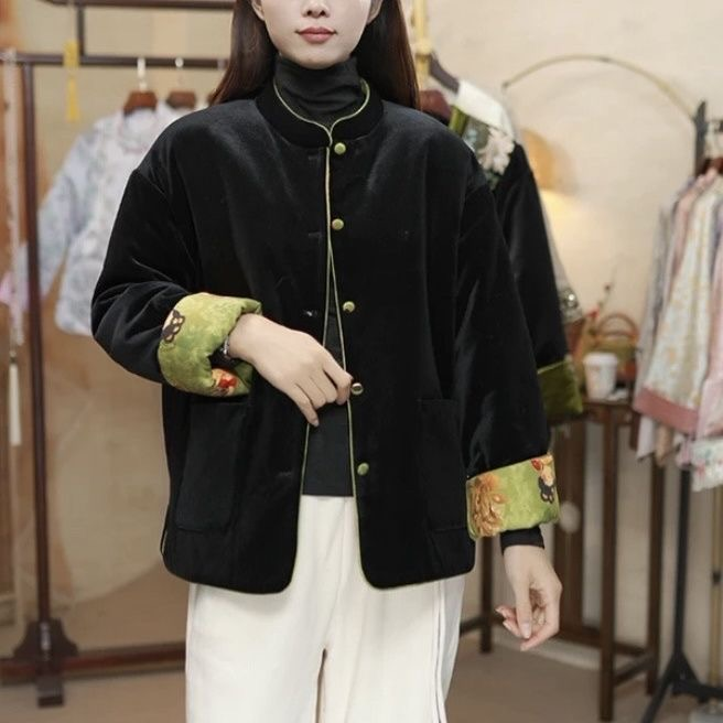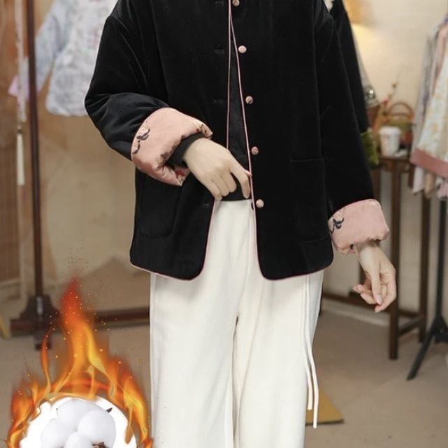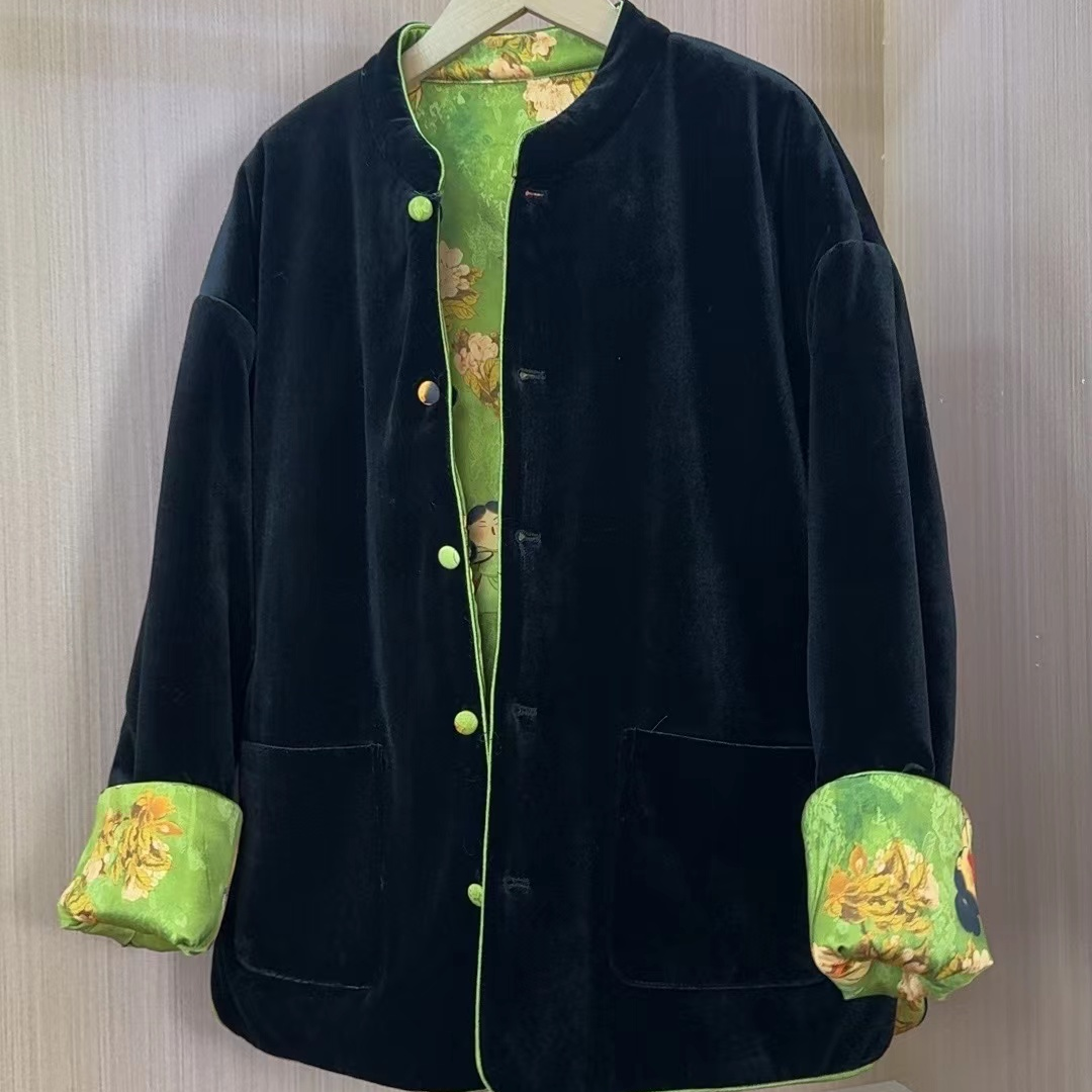 新中式国风双面穿棉服外套女冬季粉色丝绒高端小棉袄年轻唐装上衣