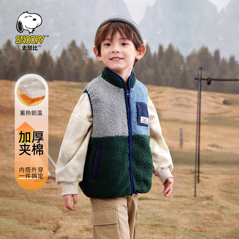 【清仓】史努比儿童女童摇粒绒马甲秋冬外穿洋气夹棉男童坎肩洋气