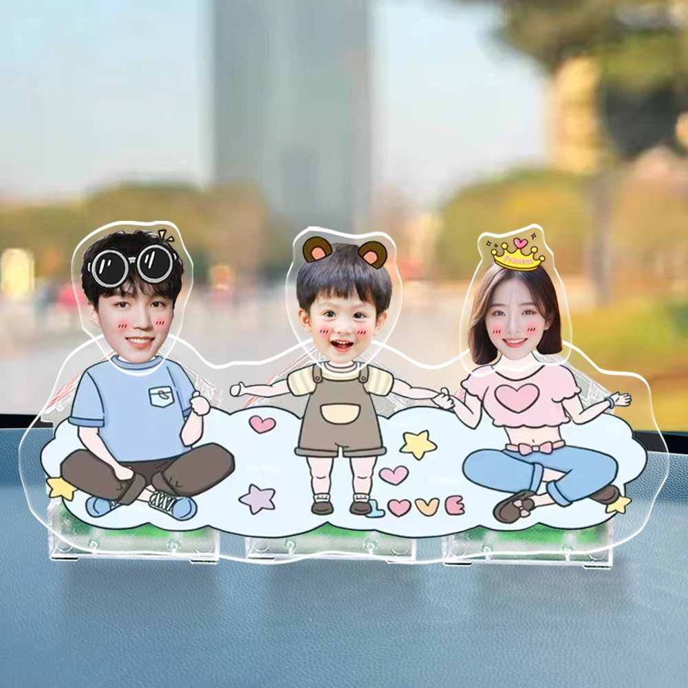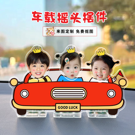 车载摇头摆件定制一家三口照片车内装饰品2025网红汽车小摆件车饰