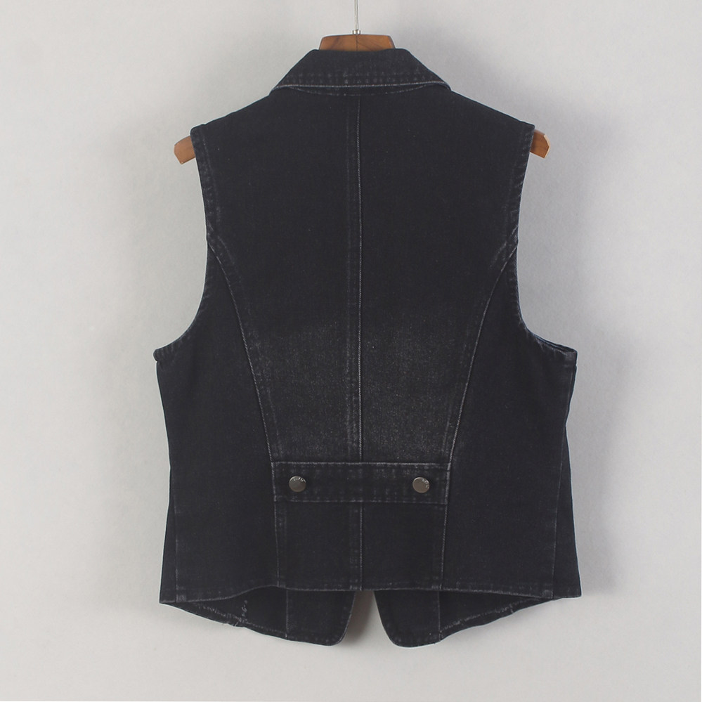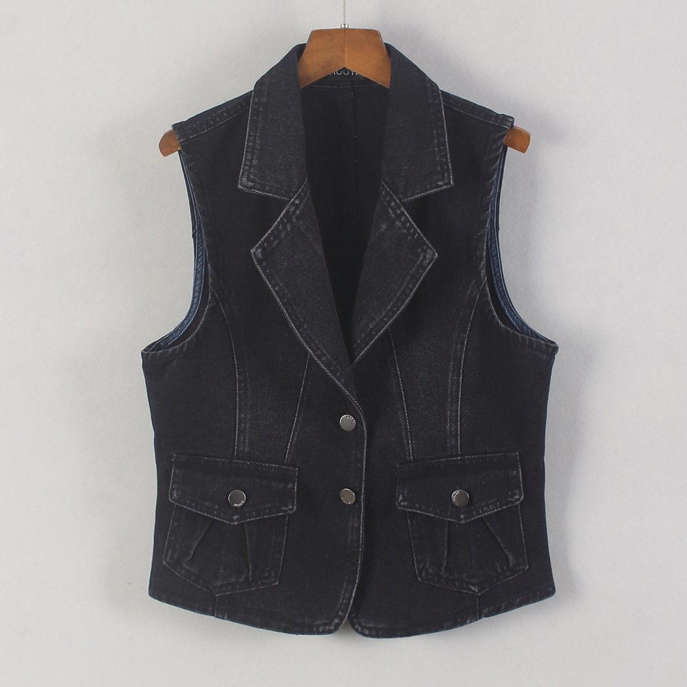 牛仔马甲女短款显瘦夏新款春秋无袖外套背心西装领收腰马夹黑口袋