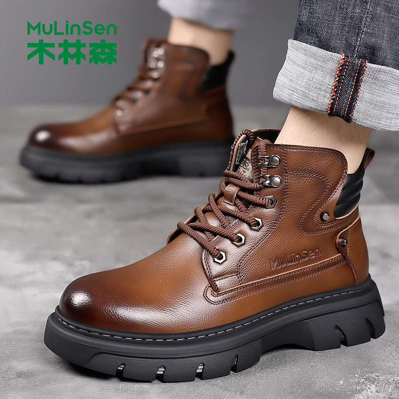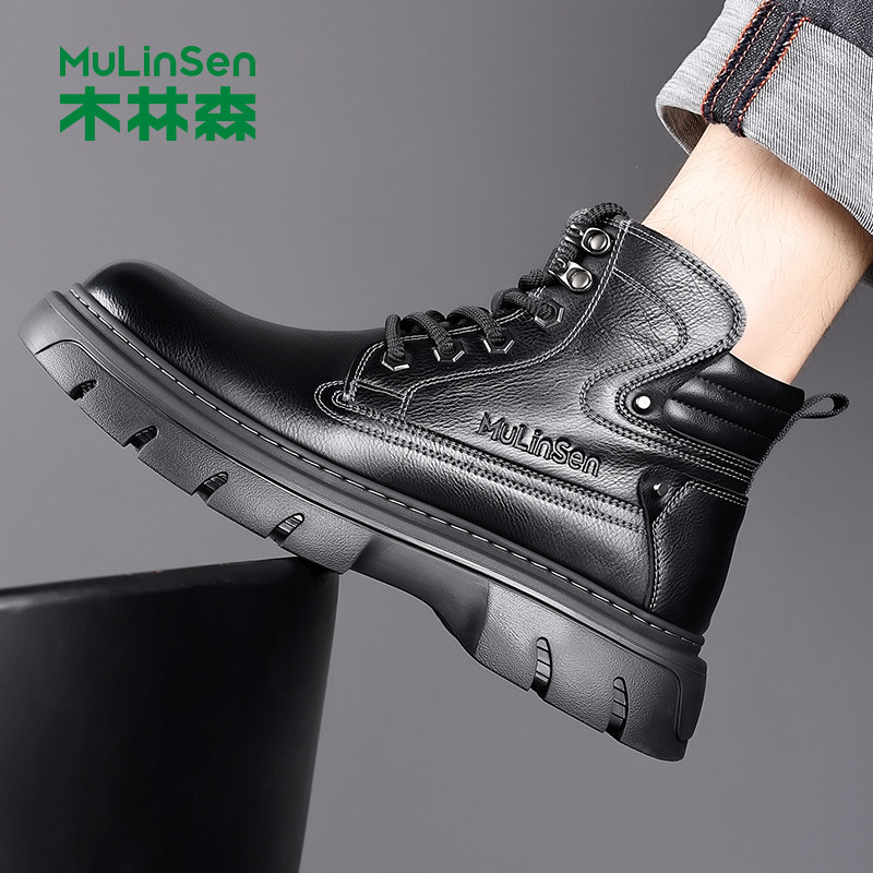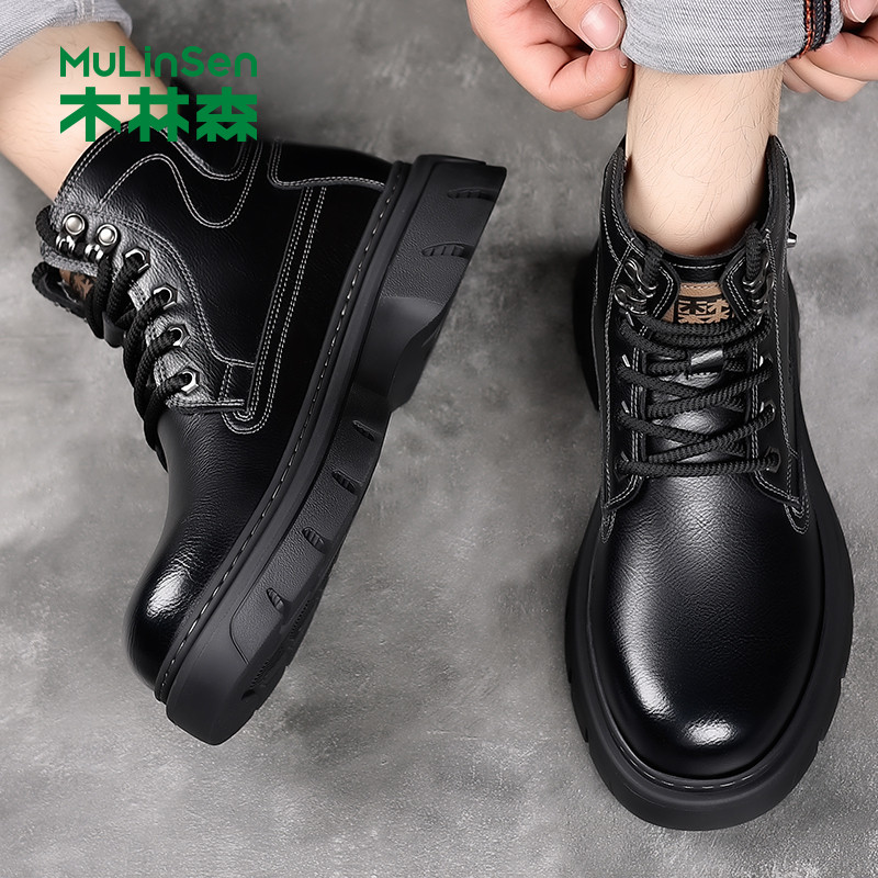 木林森马丁靴男款秋冬季复古休闲皮靴男士增高工装靴加绒保暖靴子