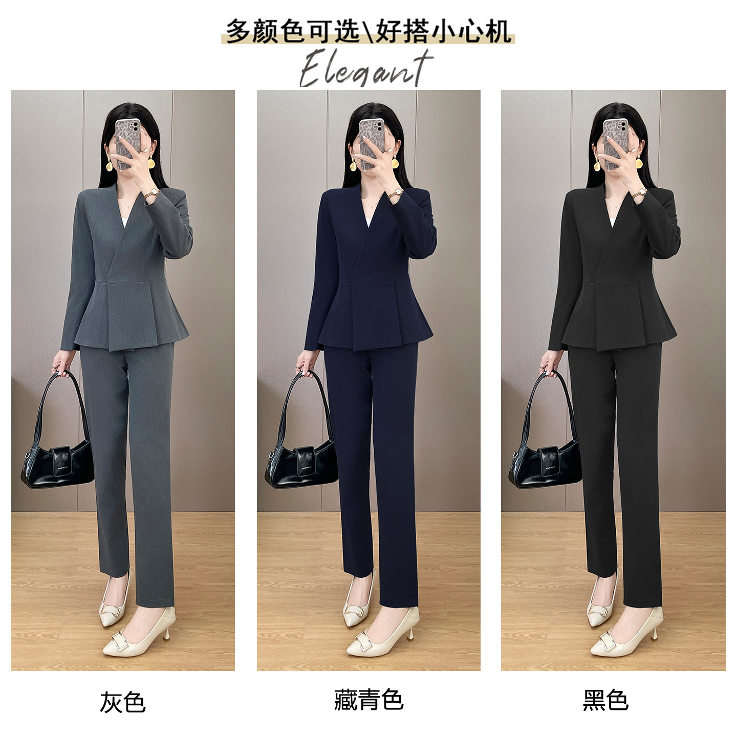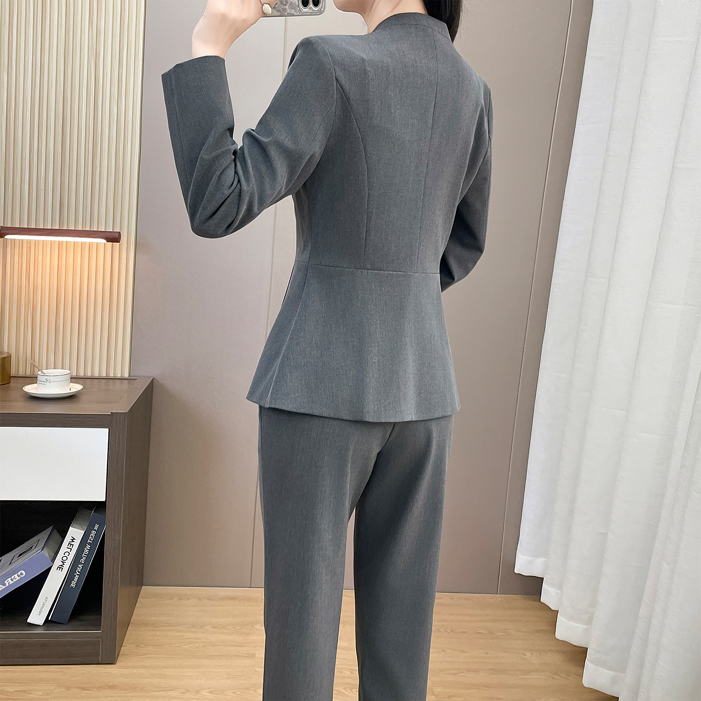 灰色职业西装套装女春秋新款高端酒店前台工装珠宝店美容院工作