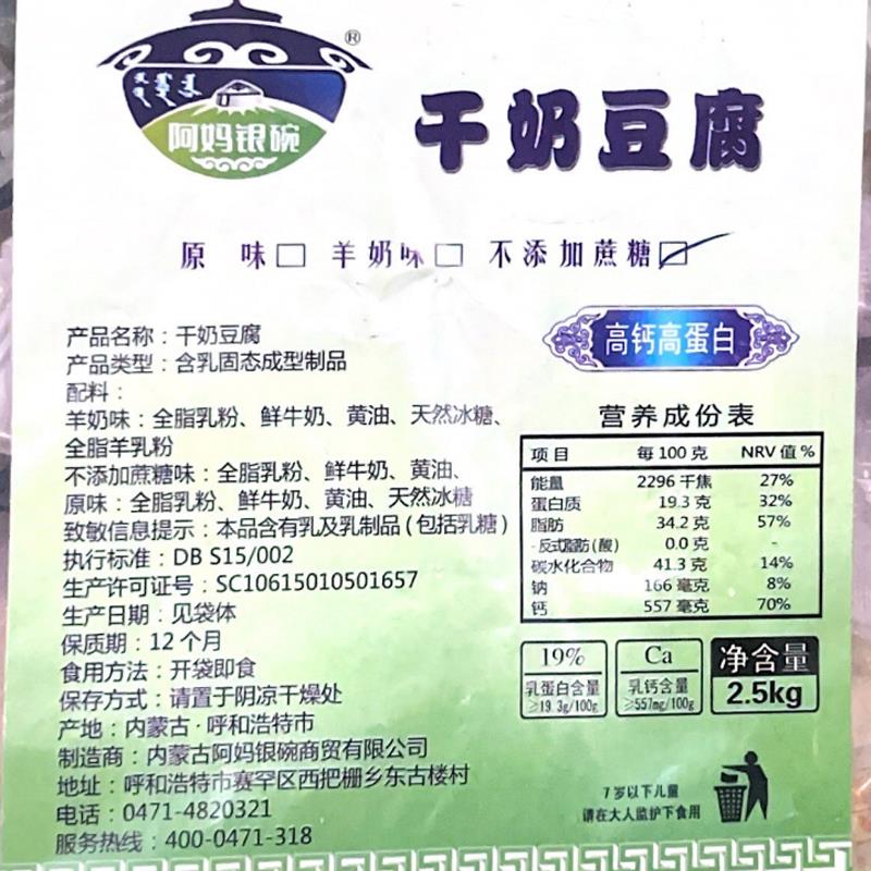 阿妈银碗干奶豆腐内蒙无蔗糖原味烤奶酪儿童营养零食高钙蛋白奶酥