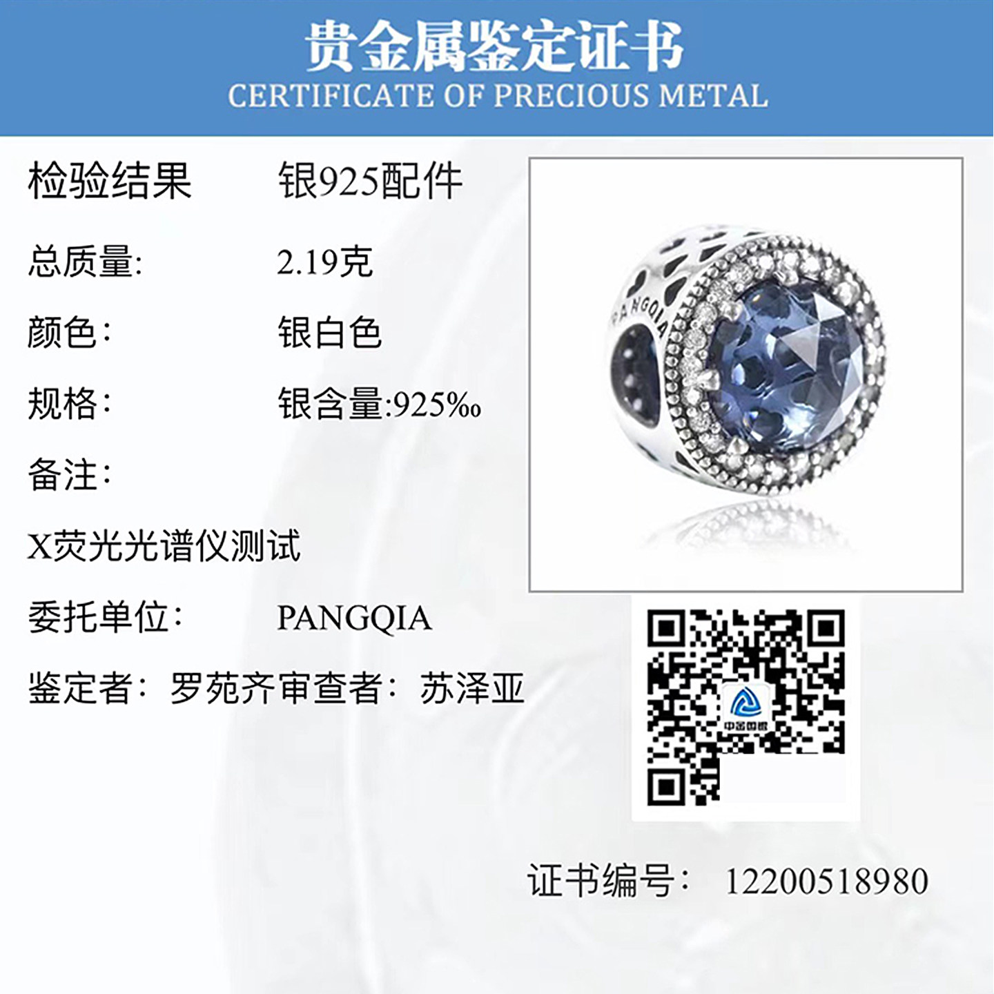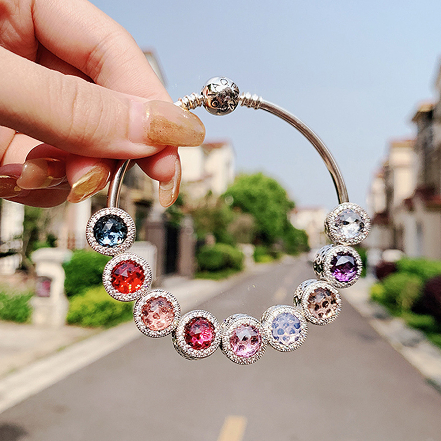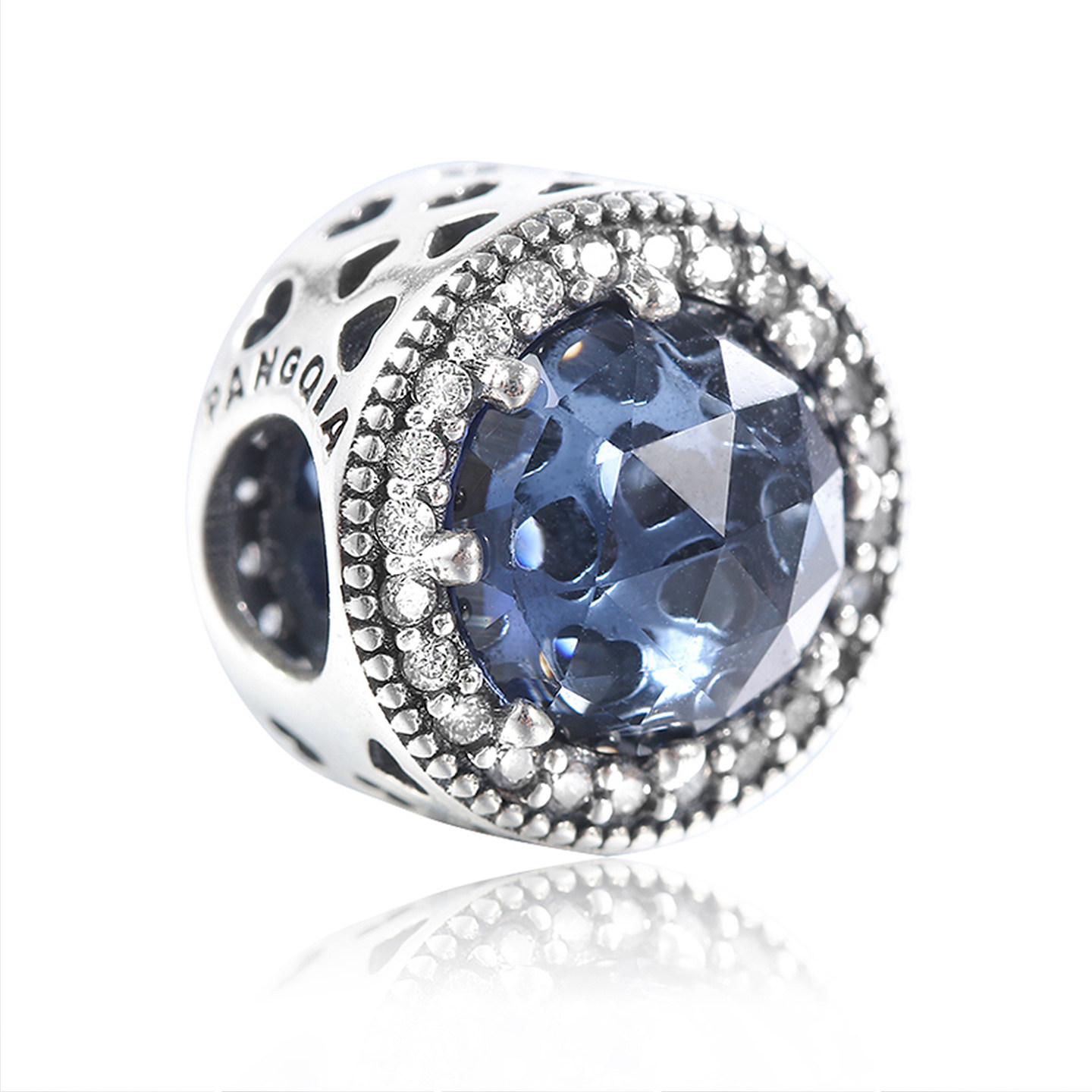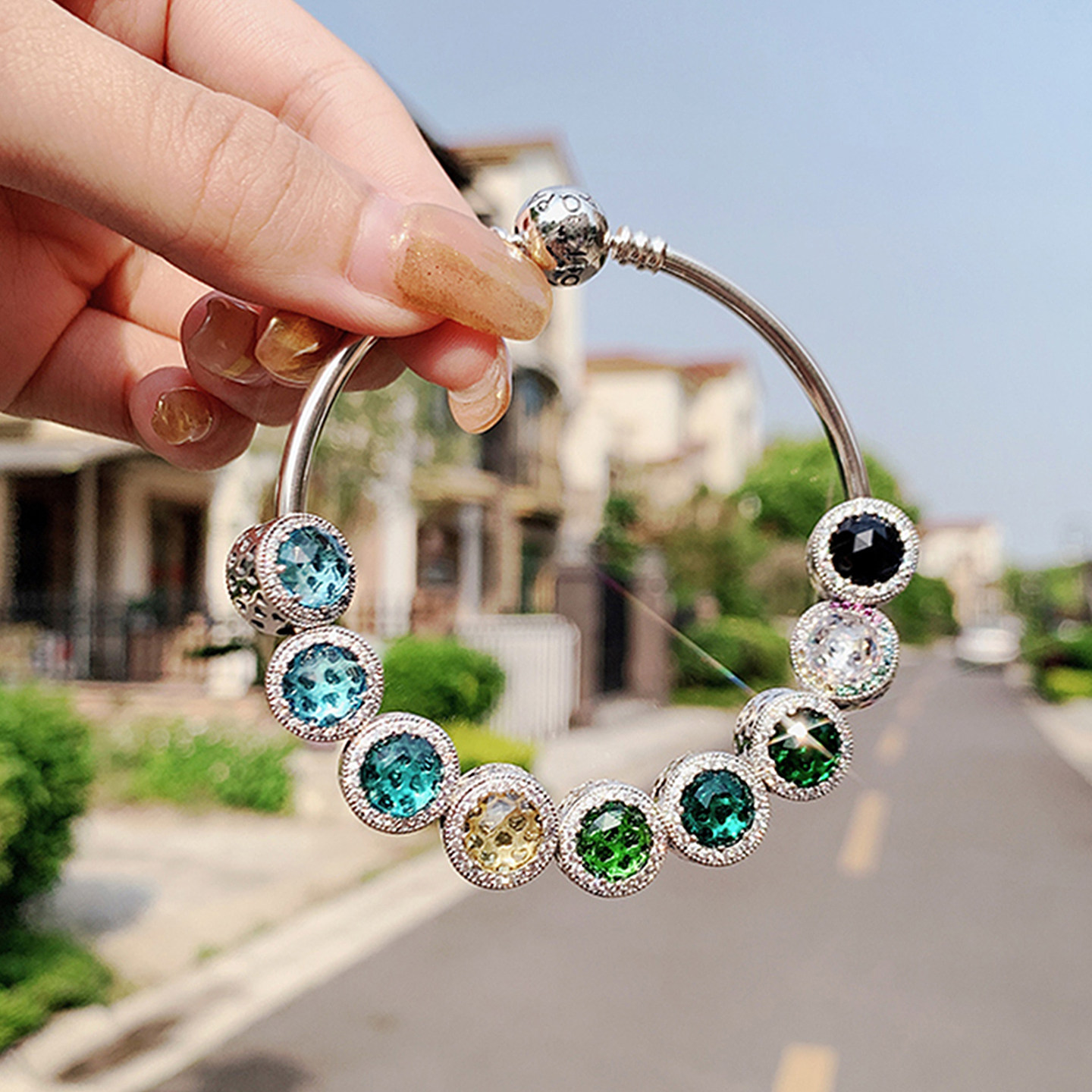 潘家风格银手镯女海洋之心猫眼石串珠925纯银手链蓝色珠子diy配件
