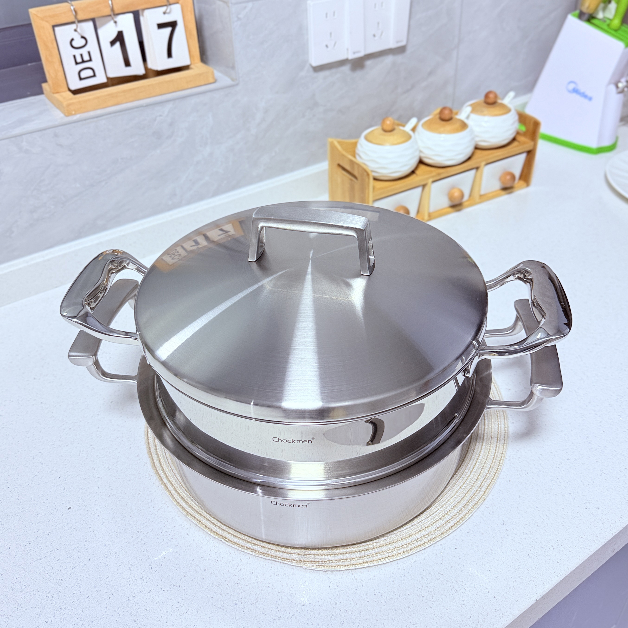 出口18-10不锈钢加厚五层汤锅夹铜钢盖微压锅不溢汤锅蒸 煎炒火锅