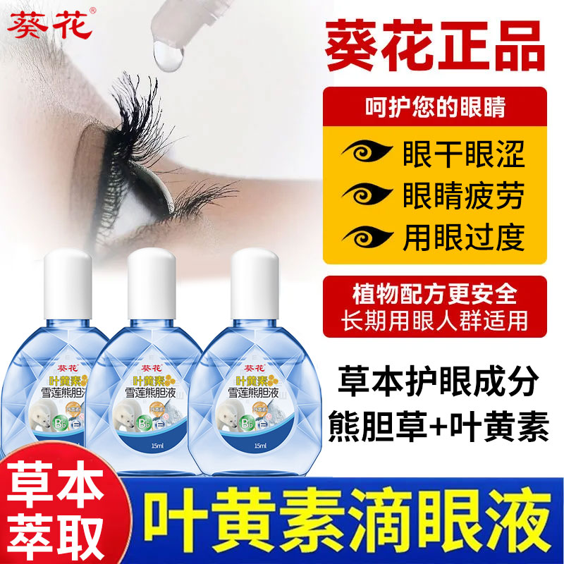 葵花蓝莓叶黄素滴眼液官方正品适用于眼疲劳干涩滋润眼睛非眼药水
