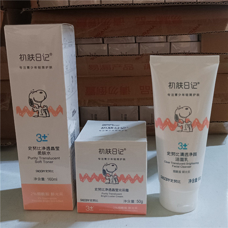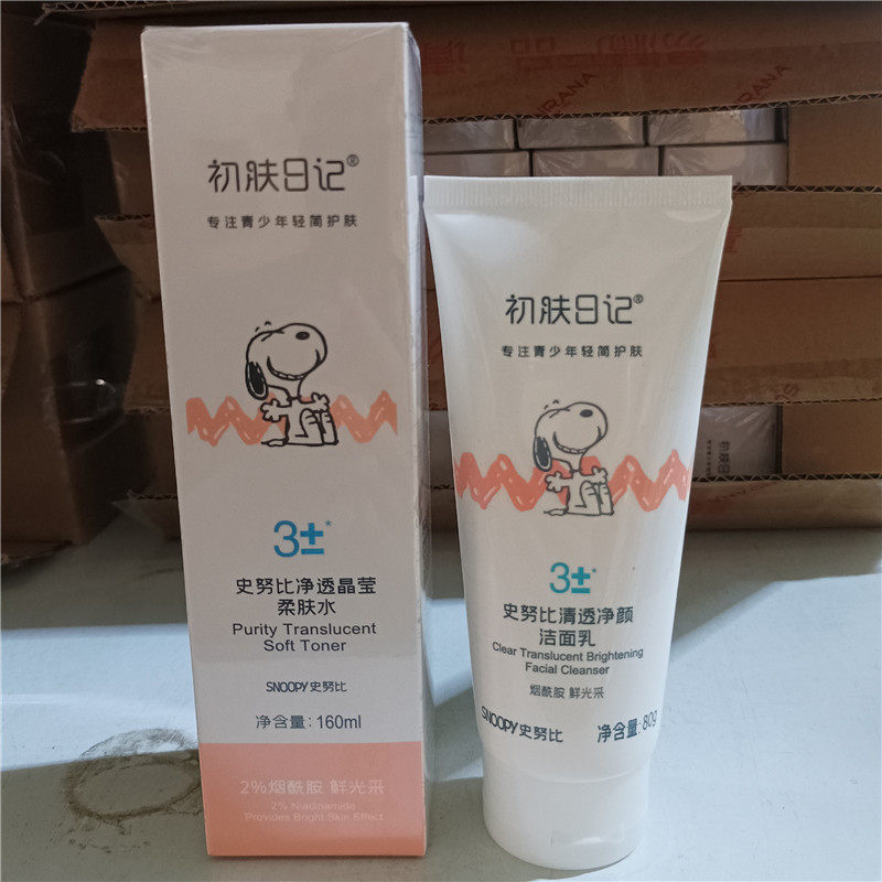 史努比清透净颜洁面水乳霜套装初肤日记补水亮肤保湿滋润青少年