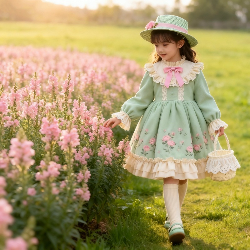 女童2025秋冬新款洛丽塔甜美连衣裙宫廷风洋气公主裙生日蓬蓬礼服