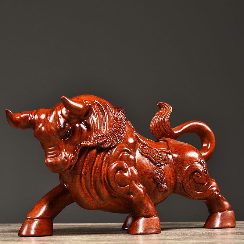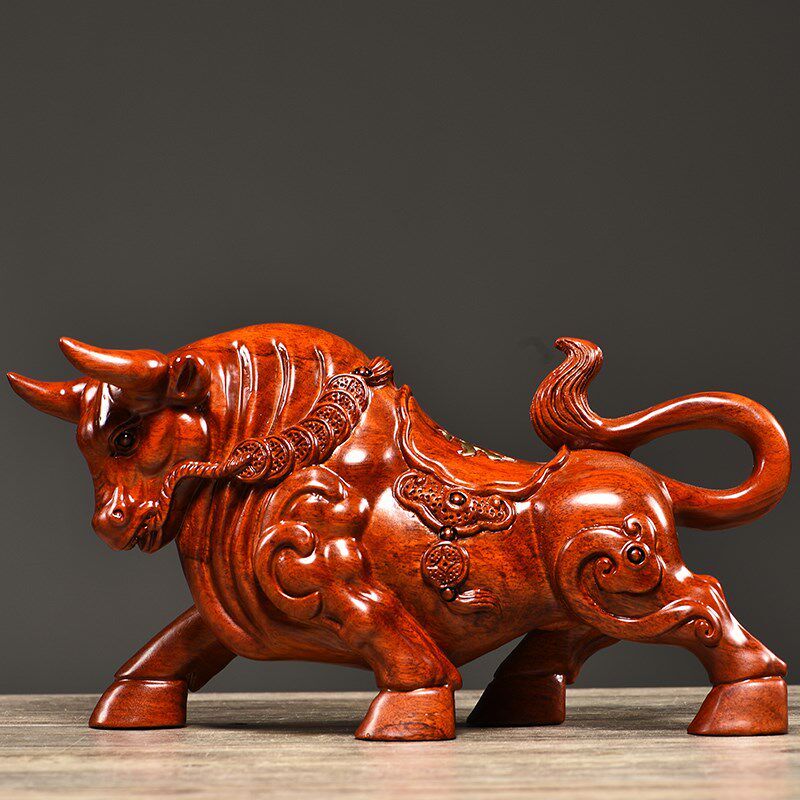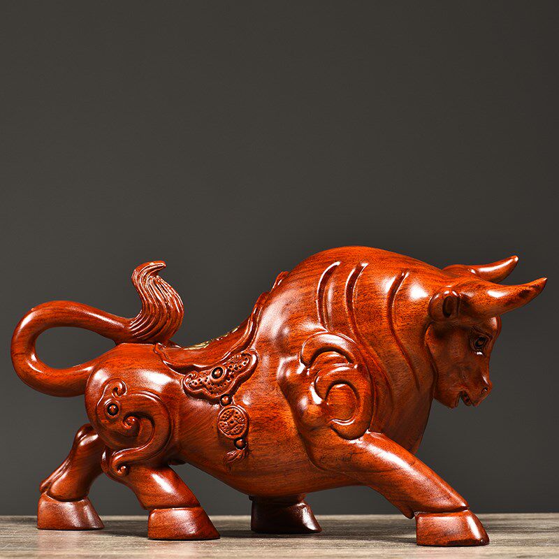 牛摆件花梨木雕红木生肖实木家居装饰牛气冲天财运牛股市公司开业