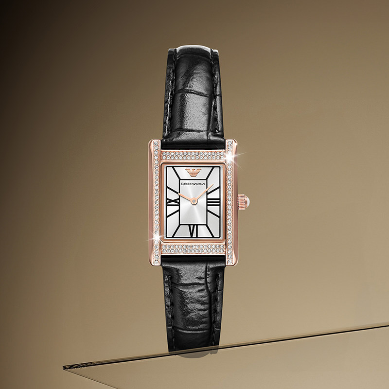 Armani阿玛尼手表女复古镶钻方表皮革表带官方正品AR11624