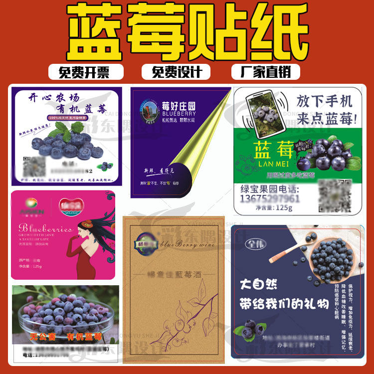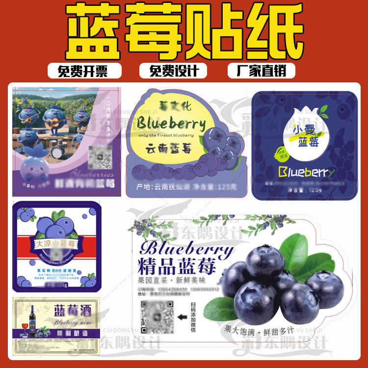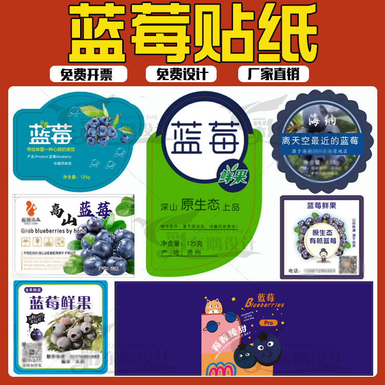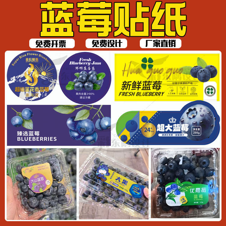 设计蓝莓腰封卡套树莓贴纸蔓越莓草莓盒贴标签杨梅杨桃水果不干胶