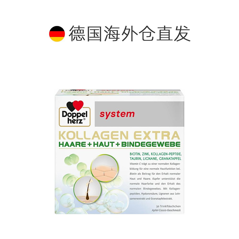 欧洲直邮德国Doppelherz双心胶原蛋白肽美容口服液提拉紧致肌肤30
