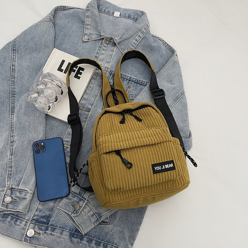 双肩包女一包三用2026新款休闲轻便灯芯绒两用斜挎背包高级感胸包