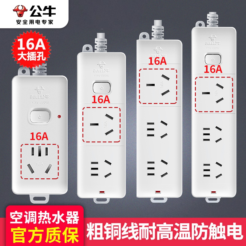 公牛16a空调专用插座转换器头16a转16安/10A大功率三孔插排插线板