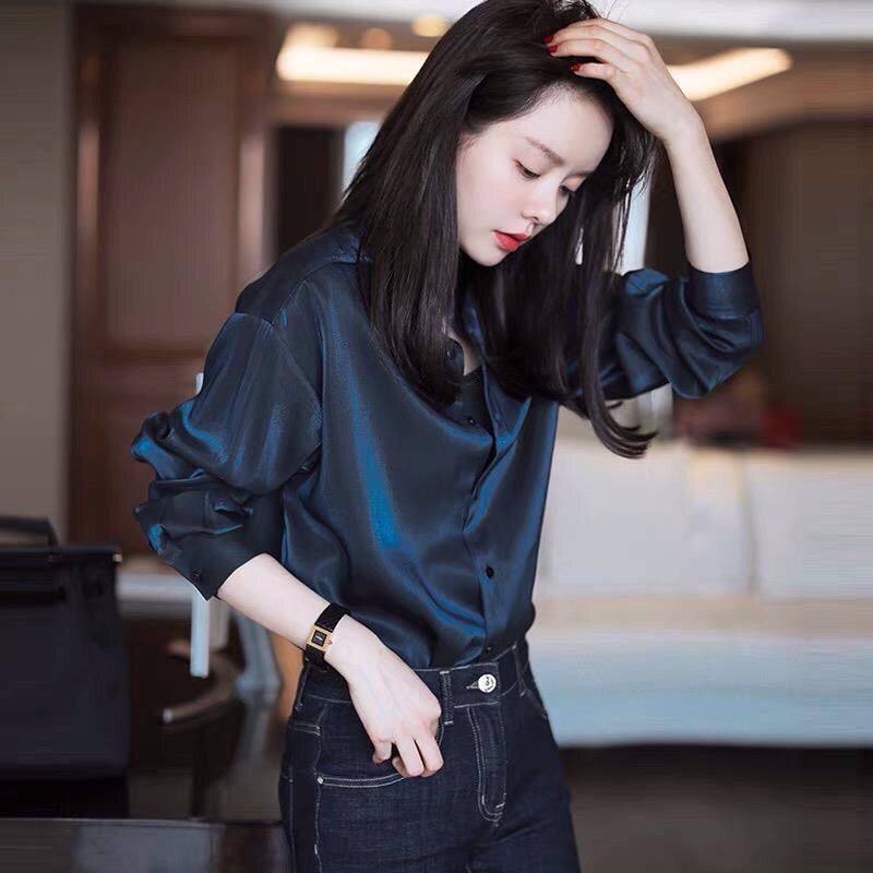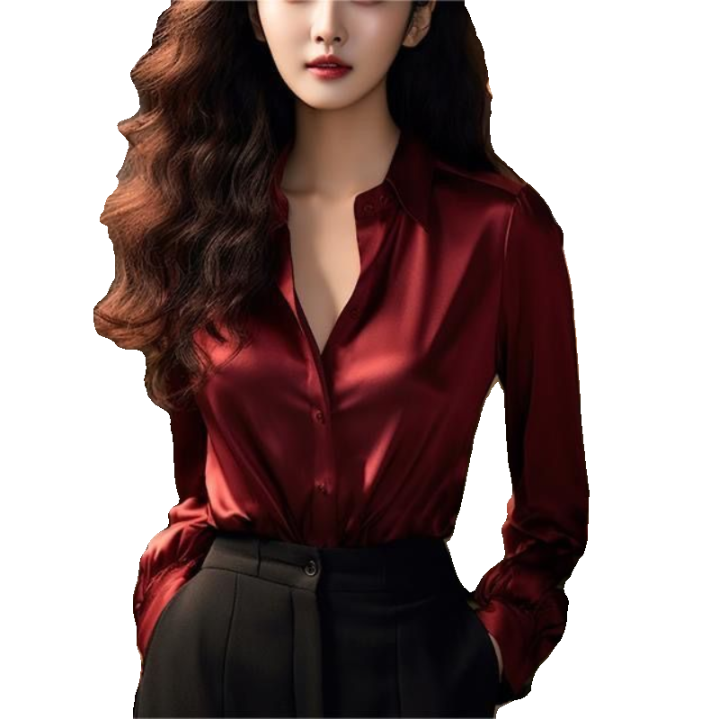 真丝醋酸缎面红色衬衫女早春季2025新款长袖法式掐腰正肩衬衣上衣