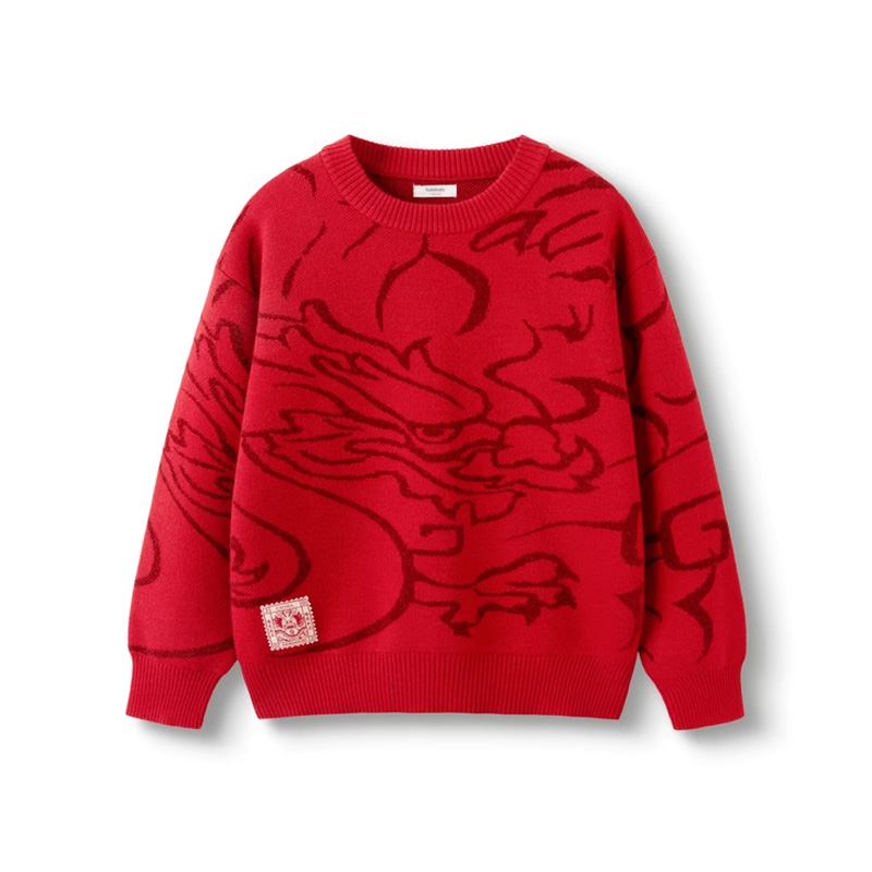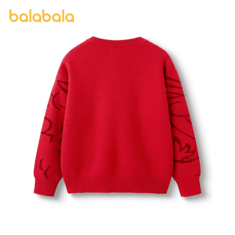 巴拉巴拉男童毛衣中大童红色毛衫儿童圆领针织衫2025秋季新款童装