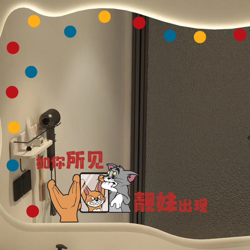 猫和老鼠汤姆猫卫生间镜子贴纸墙贴浴室防水波点镜面可爱装饰贴画