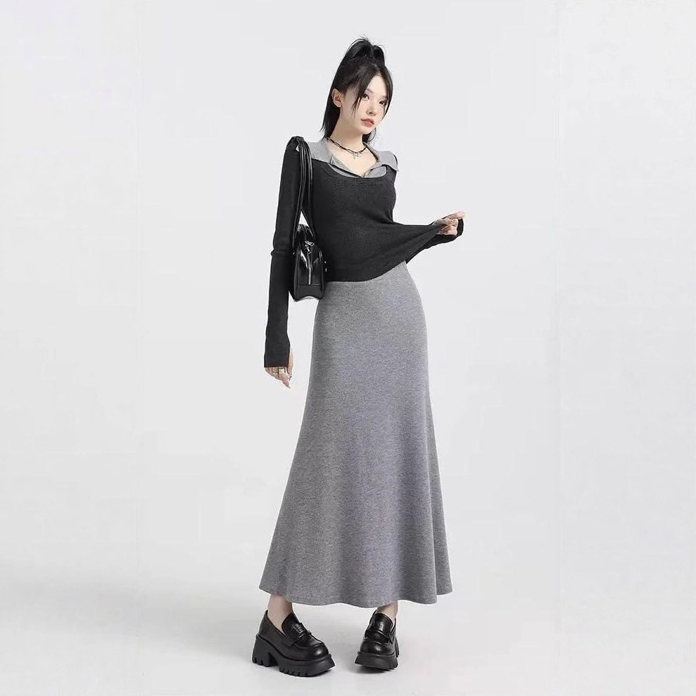 空气层大码女装胖mm鱼尾半身裙秋季新款2025新款高腰显瘦A字裙子